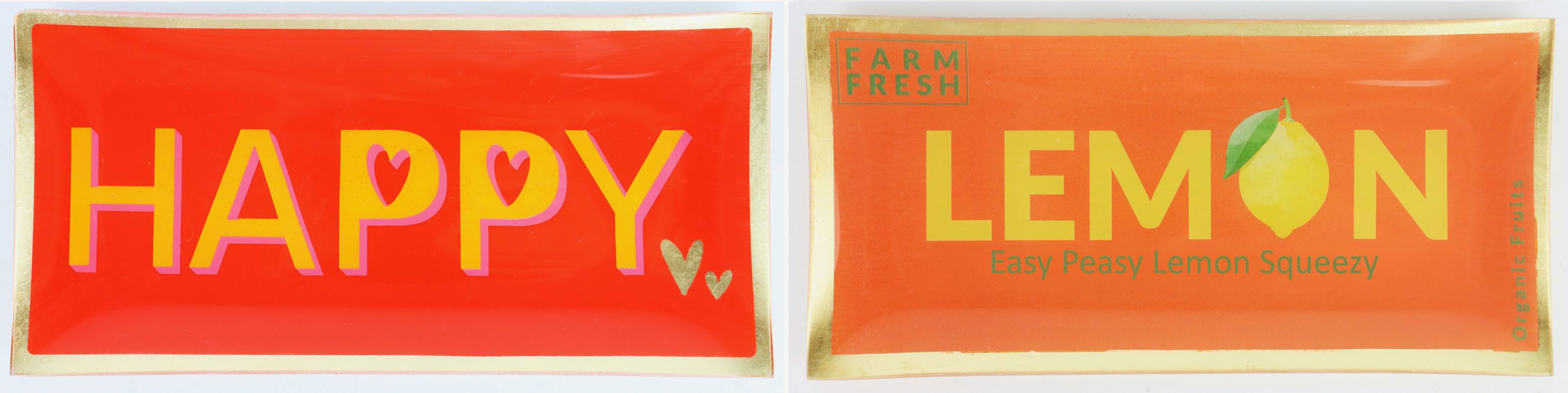- Hochwertiges, zweiteiliges Glastellerset mit moderner Nachricht.
