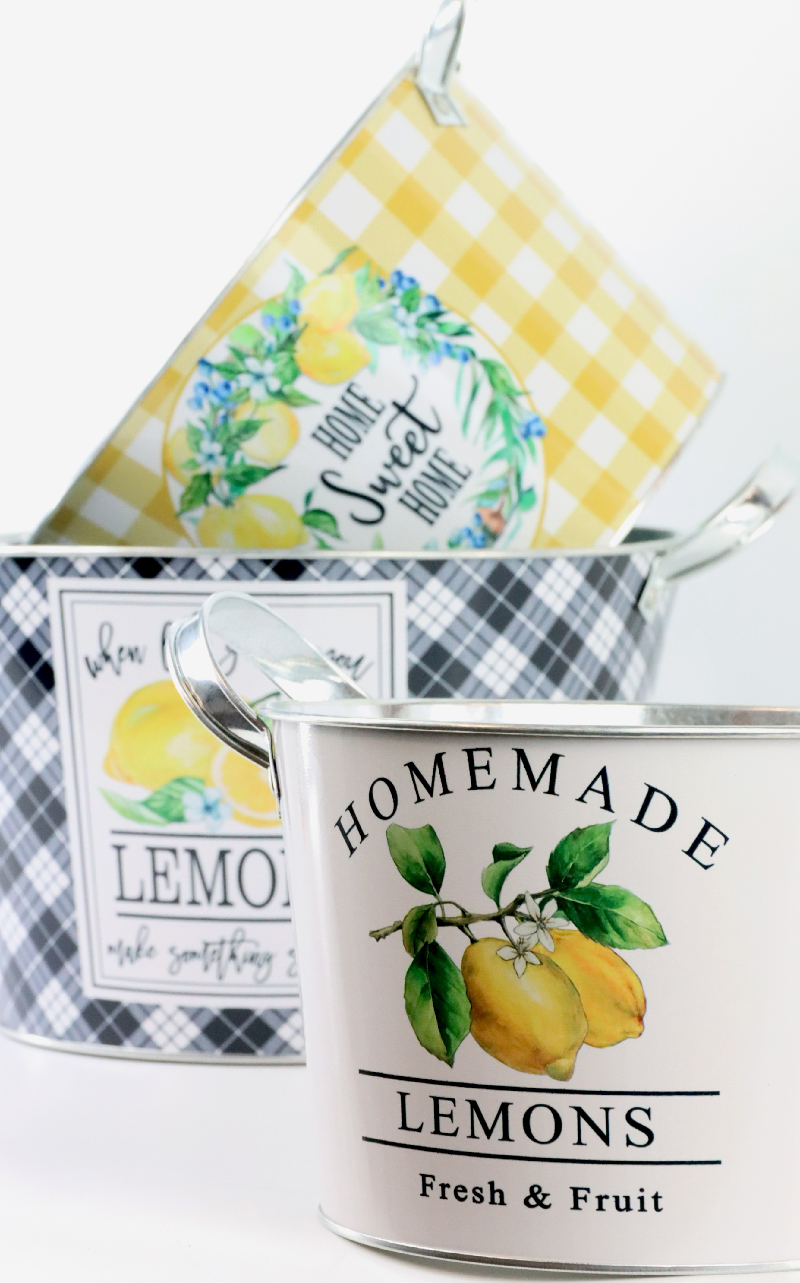Jeder Topf des Sets – in den Größen von ca. 36 cm, 30,5 cm und 26 cm – ist mit einem charmanten Zitronenmotiv verziert, das der Umgebung einen Hauch mediterranen Flairs verleiht. Die robuste Zinkkonstruktion sorgt für Langlebigkeit und Widerstandsfähigkeit, wodurch die Töpfe nicht nur dekorativ, sondern auch praktisch sind. Sie eignen sich ideal für den Einsatz im Innen- und Außenbereich und bieten vielseitige Gestaltungsmöglichkeiten – sei es als Pflanztöpfe, als stilvolle Aufbewahrung oder als eigenständiges Dekorelement.