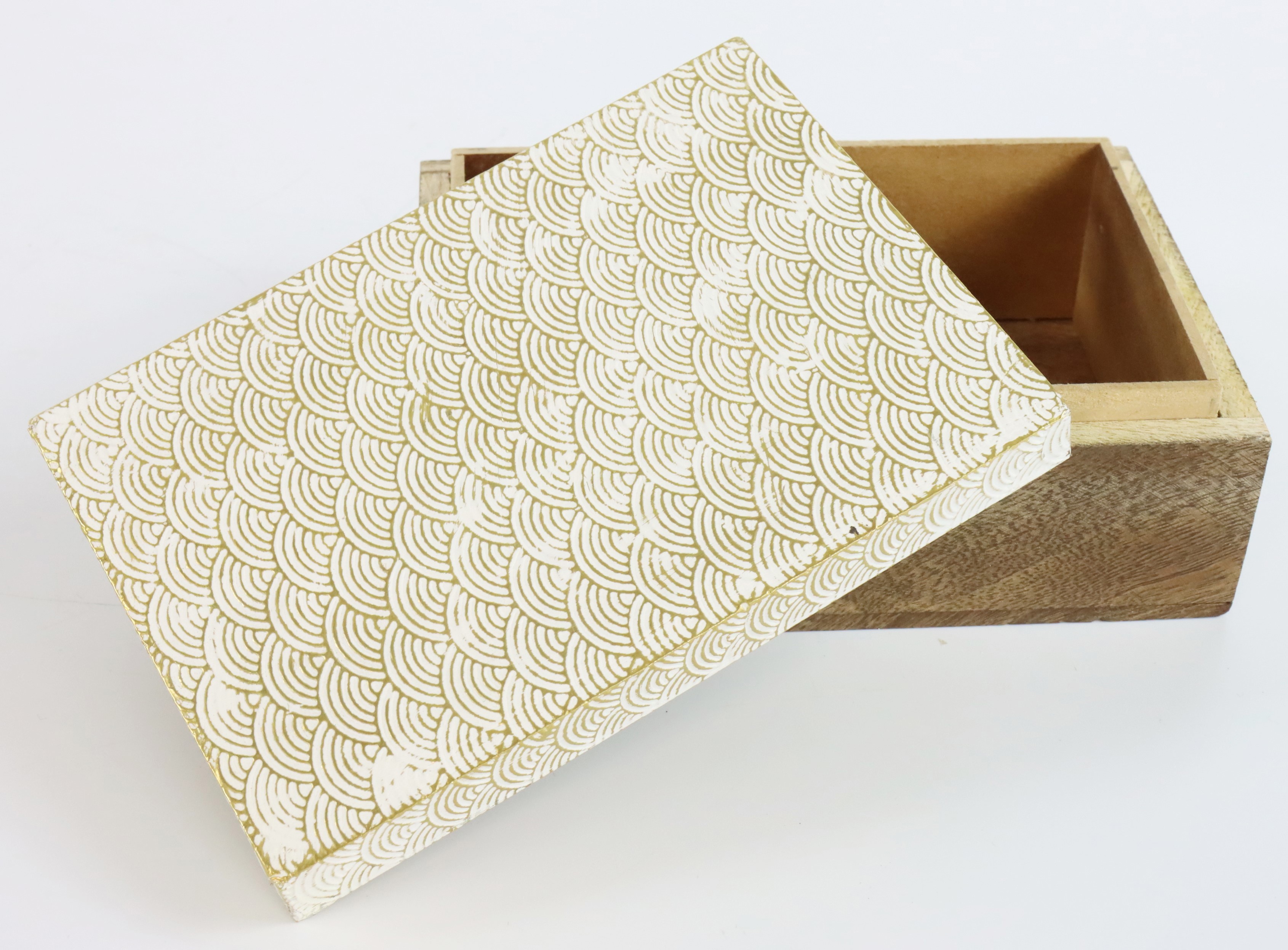Diese Holzkisten eignen sich optimal zum Aufbewahren von Schmuck, Erinnerungsstücken oder anderen Wertsachen. Sie sind nicht nur funktional, sondern auch dekorativ und eignen sich perfekt zur Darstellung auf Anrichten, Tischen oder Bücherregalen. Sie kommen in einem Set von zwei Größen, ca. 15 cm und 12,5 cm, um Ihre Bedürfnisse an verschiedene Lageranforderungen zu erfüllen.