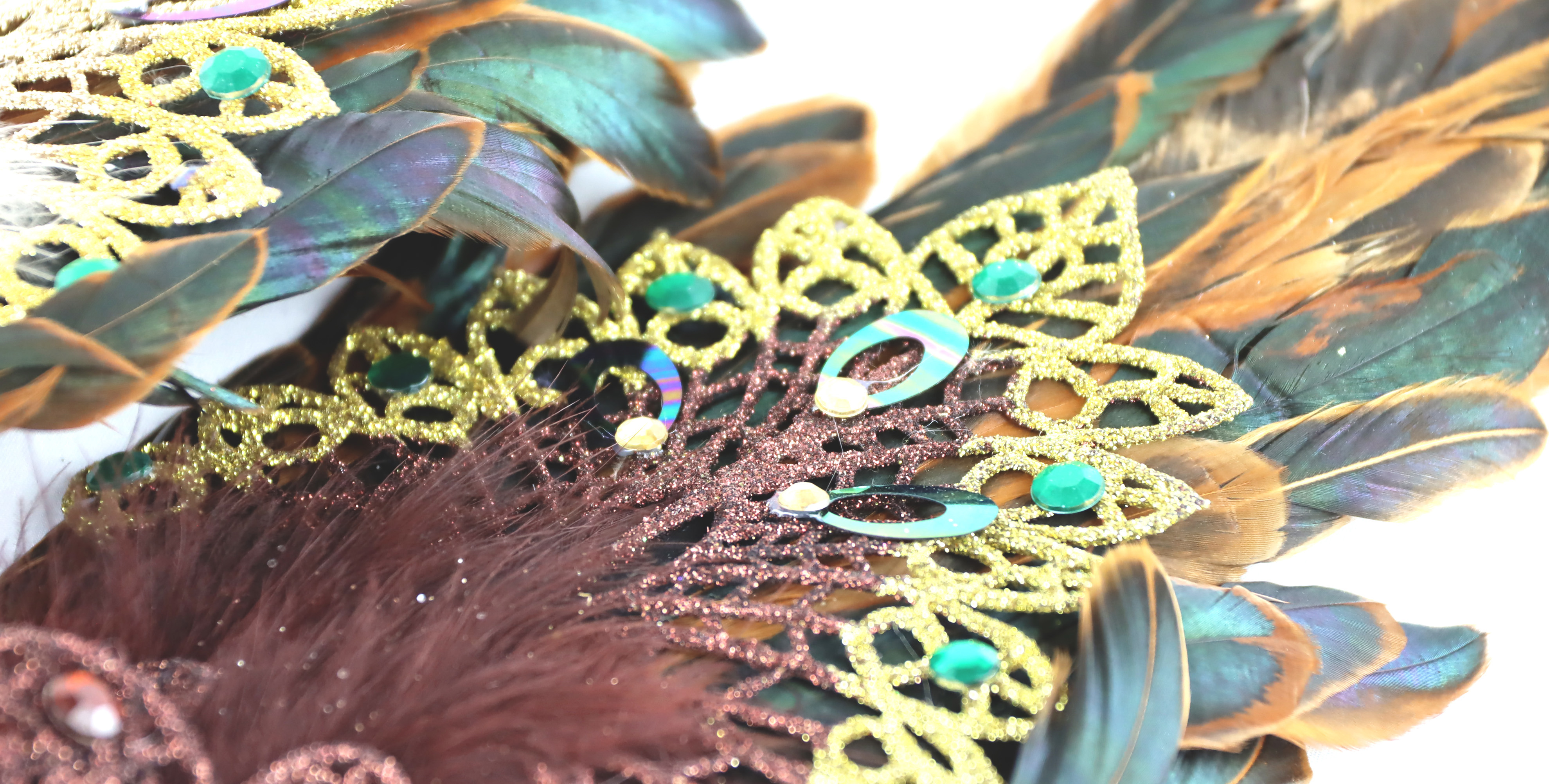 - Material: Hochwertige Textilfeder, glitzernde Akzente