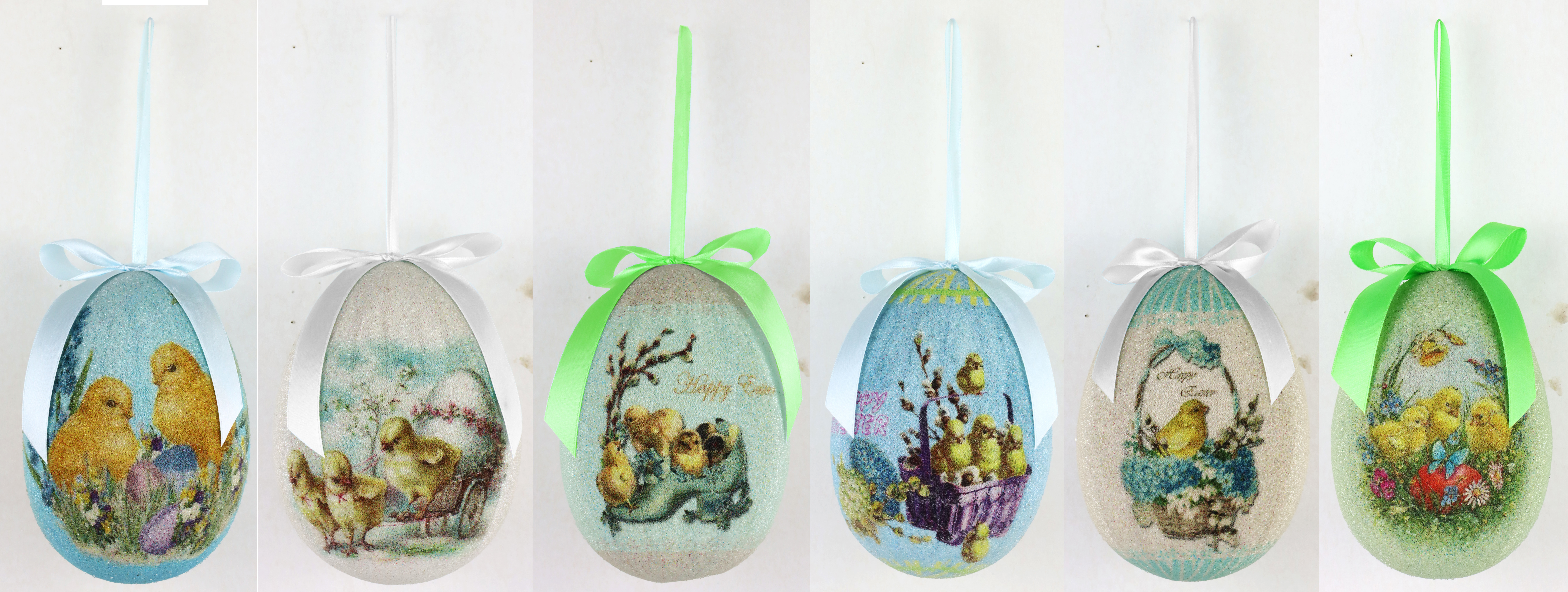 - **Auffällige Dekoration:** Set aus sechs nostalgisch gestalteten Hängeeiern mit einer Größe von etwa 15 cm.