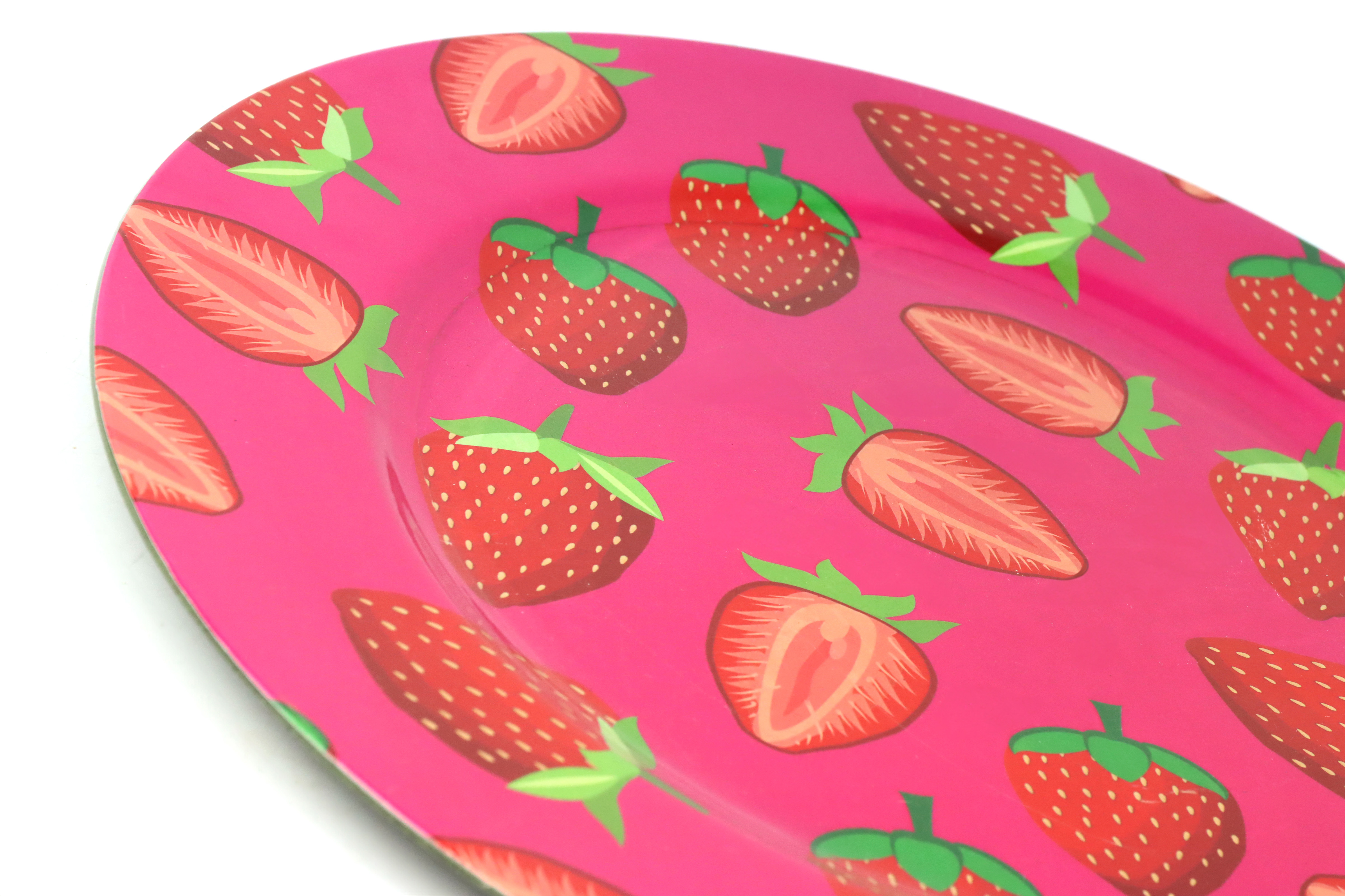 - **Setumfang:** 4 Teller mit Erdbeermotiv