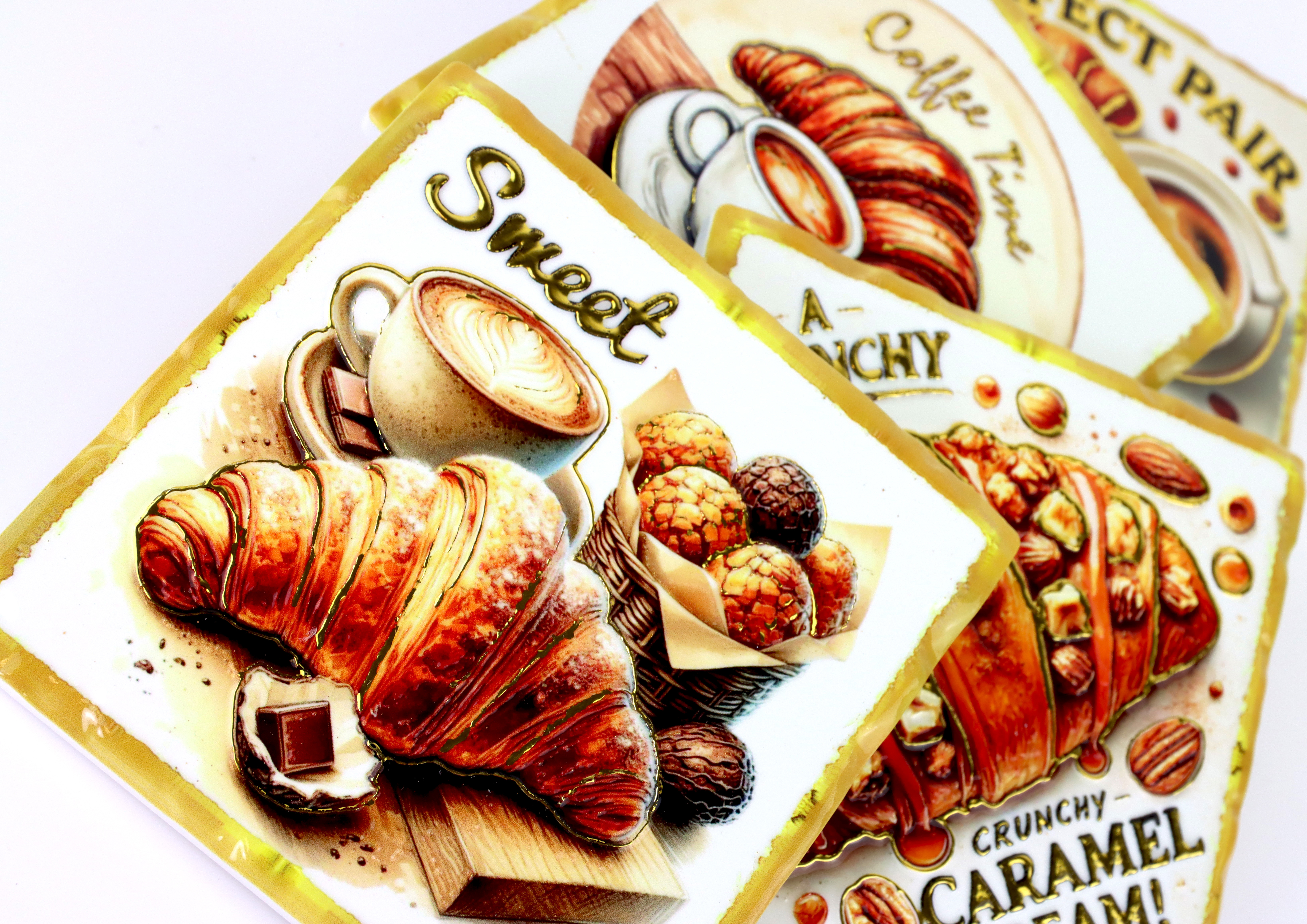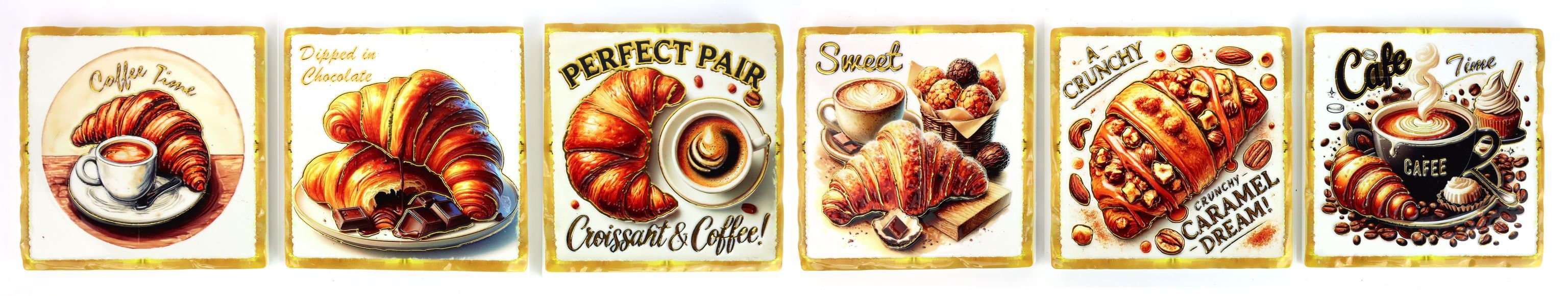 The "Petit Déjeuner" design brings a touch of French flair to every table. Perfectly positioned in your shop, this coaster set will attract the attention of customers who value tasteful decoration and functionality. As a gift idea for design lovers or as an addition to kitchen decorations, the coasters offer a wide range of uses.