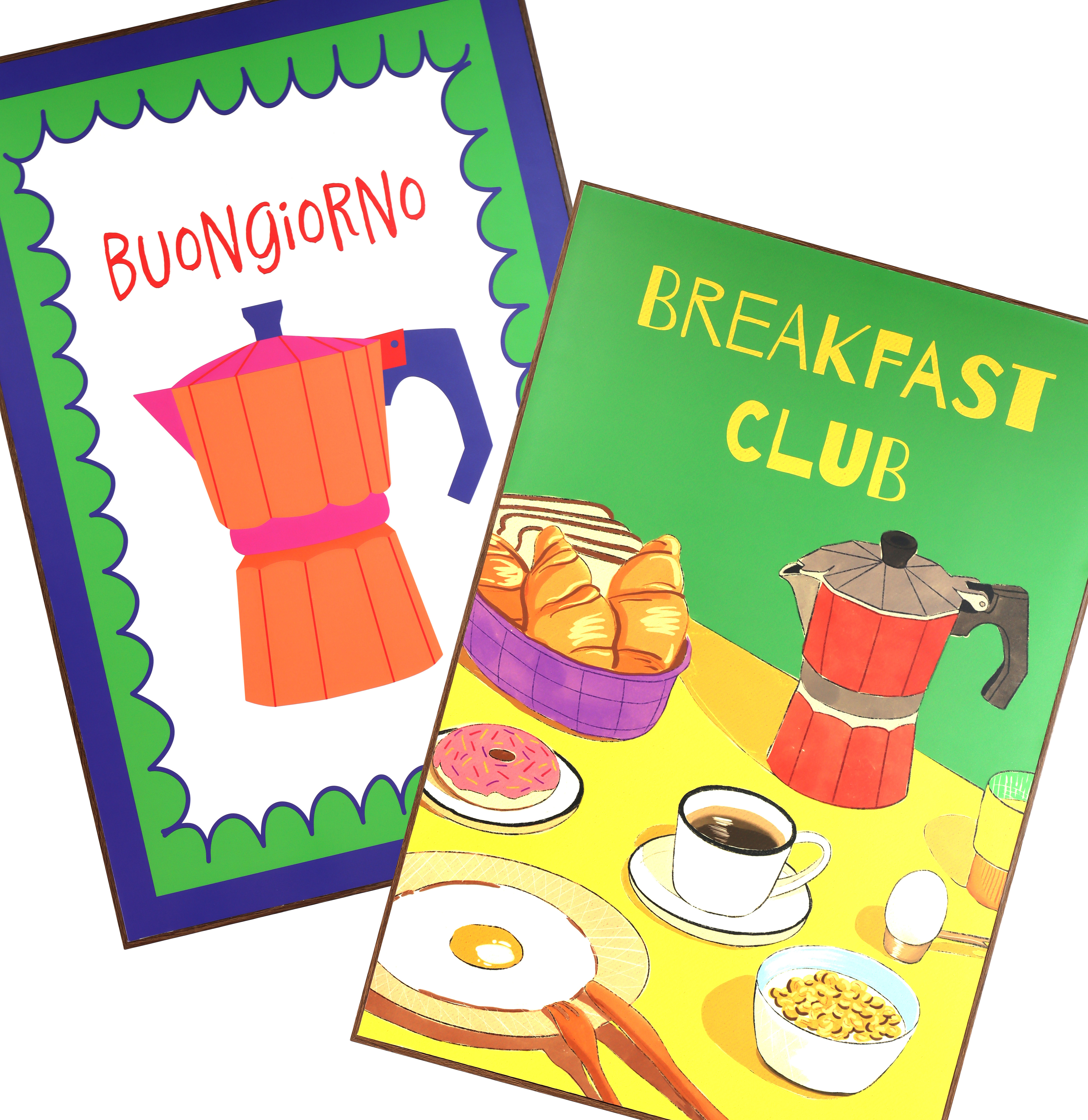 **Product description for "Breakfast Club" wall murals (set of 2)**