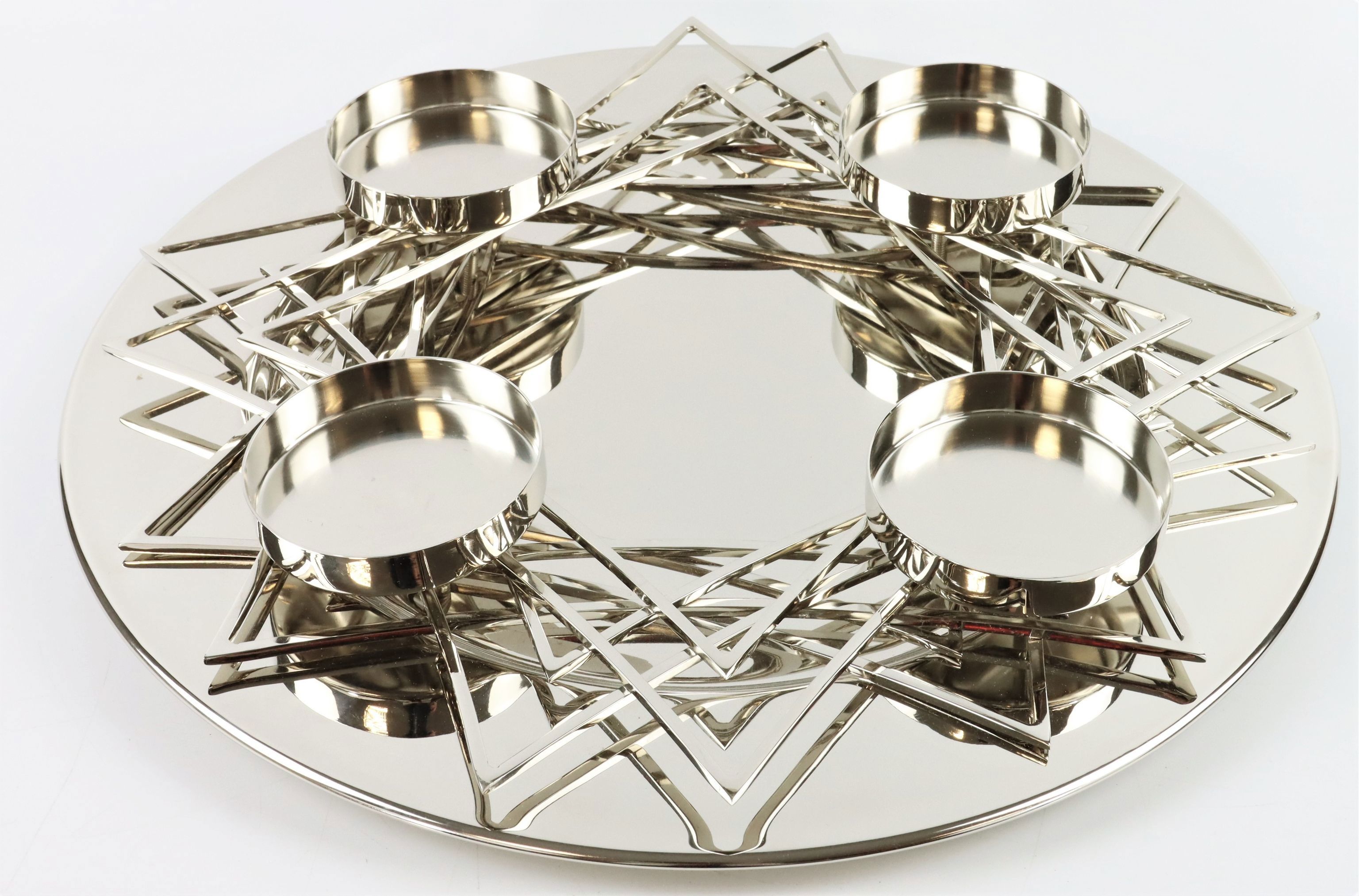 Our "Empire" chandelier bowl is specially designed for tea lights and can help to create a wonderfully cosy atmosphere in your living or business space. Made from high quality stainless steel in a glamorous silver colour, it also features shiny nickel plated accents that will add a striking, sophisticated touch to any room. A round glass diameter of 40 cm completes the luxurious design.