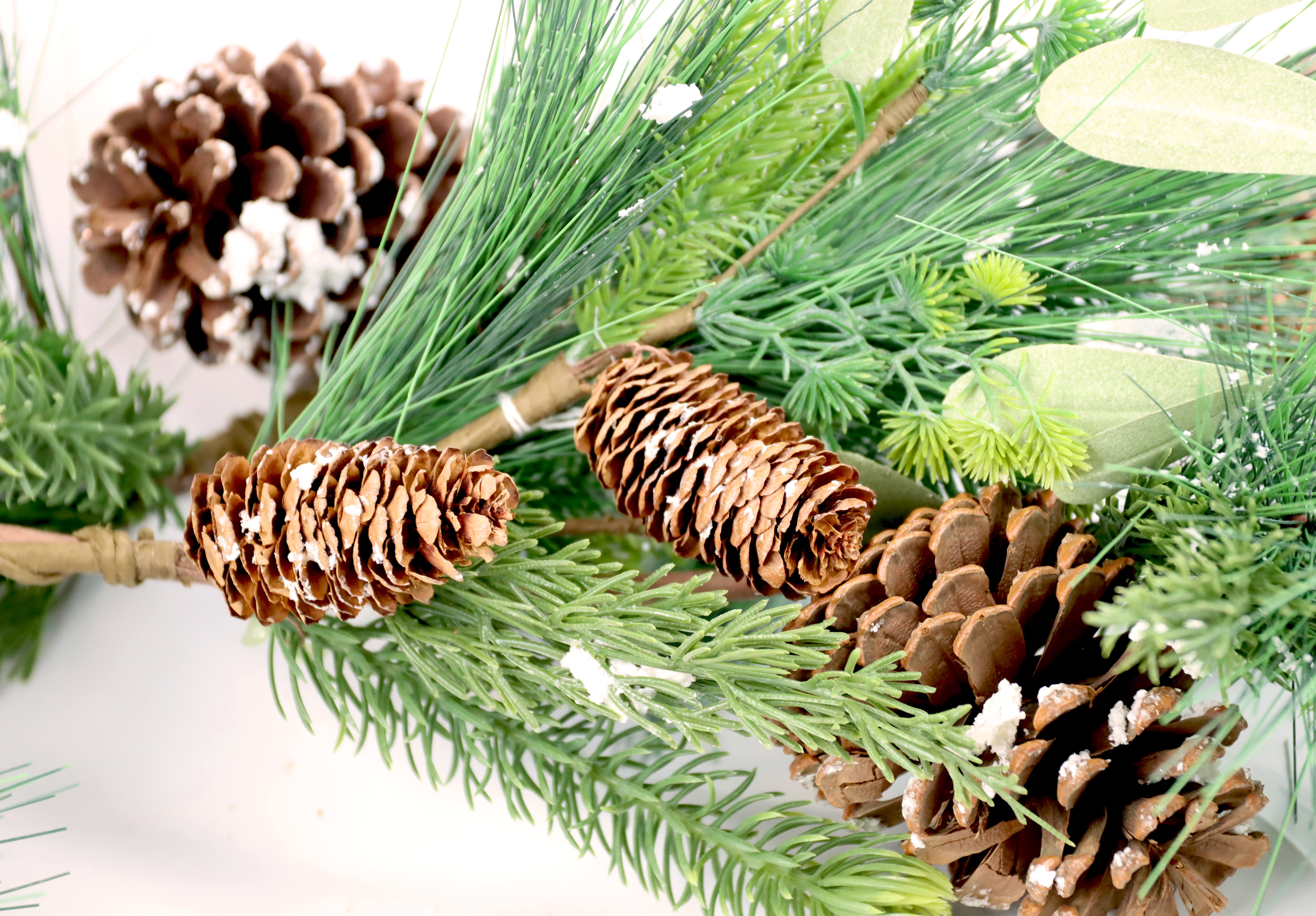 By incorporating natural elements, the garland can be used in both modern and traditional retail store designs. The flexible structure makes it easy to attach and design, adapting to the conditions on site. Combine this garland with festive lights, red bows or shiny Christmas baubles to create individual and inviting accents that will delight your customers.