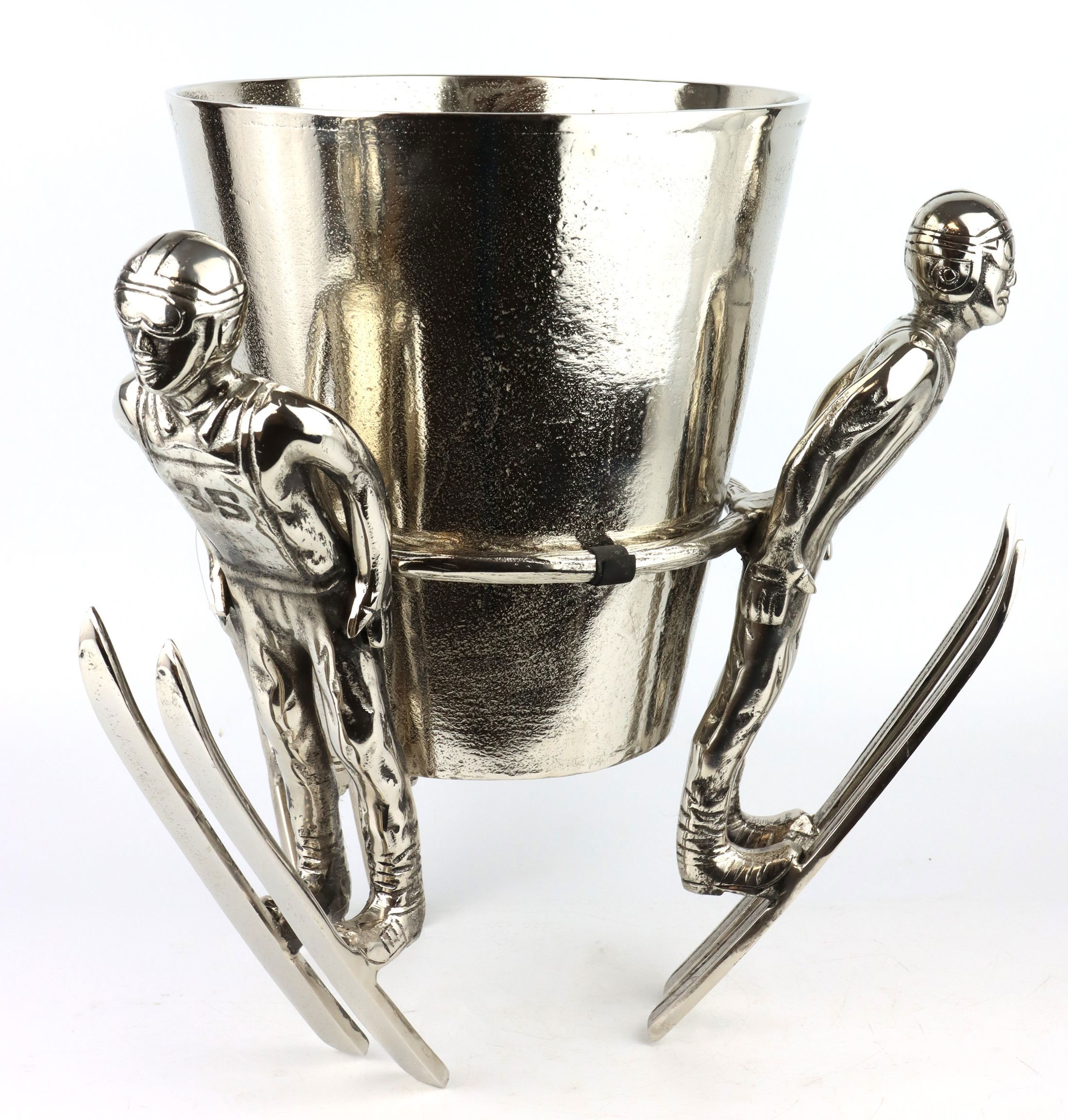 Discover the exclusive "Gipfelglanz" bottle cooler - the must-have for stylish stationary retail in the home and lifestyle sector. This elegant accessory is not only an eye-catcher on any table, but also fulfils its function as an effective cooler for your favourite drinks. Made from high-quality aluminium, the bottle cooler is presented in an elegant silver tone, reminiscent of the snow-covered peaks of a wintry mountain landscape. With a height of approx. 38 cm, the "Gipfelglanz" is ideally proportioned to cool and present both wine bottles and champagne in style.