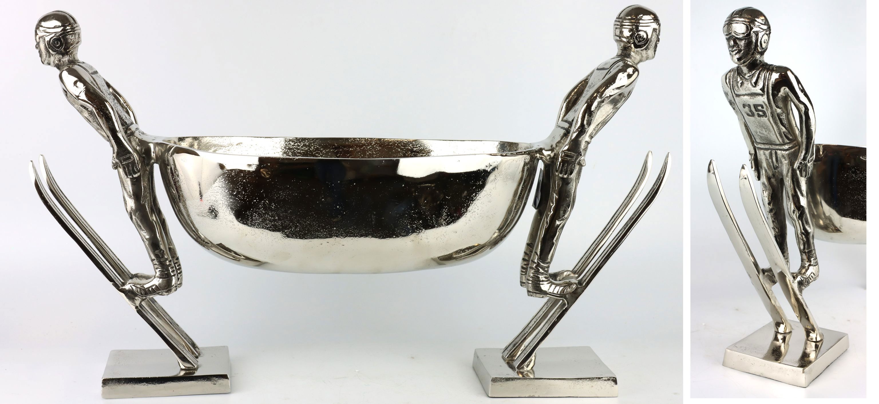 - **SEO-relevant keywords:** Cup bowl, ski jumper, aluminium, winter decoration, elegant design.
