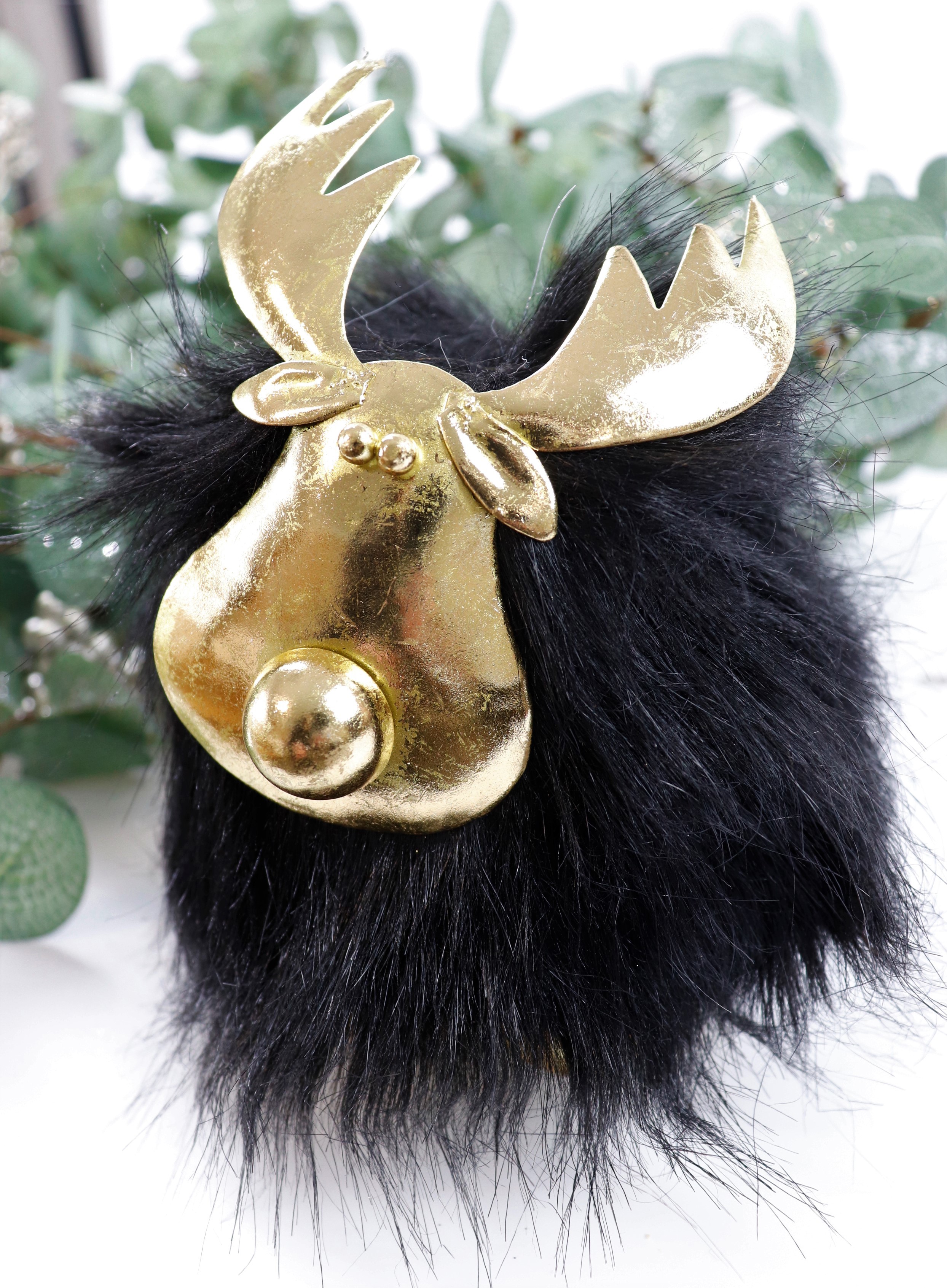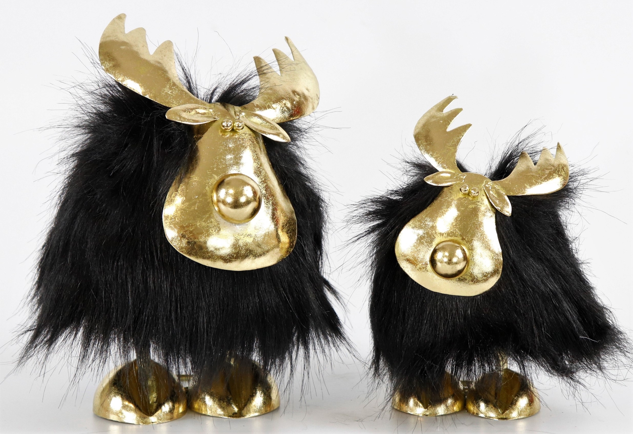 Add a touch of stylish elegance to your Christmas decorations with our exclusive "FANCY MOOSE S/2" set. This enchanting 2-piece set impresses with its luxurious look, which consists of a harmonious combination of gold, black faux fur and fine polyresin. The two moose, measuring approx. 19 cm and 24 cm, create glamorous accents in any room and are the highlight of your seasonal decorations.
