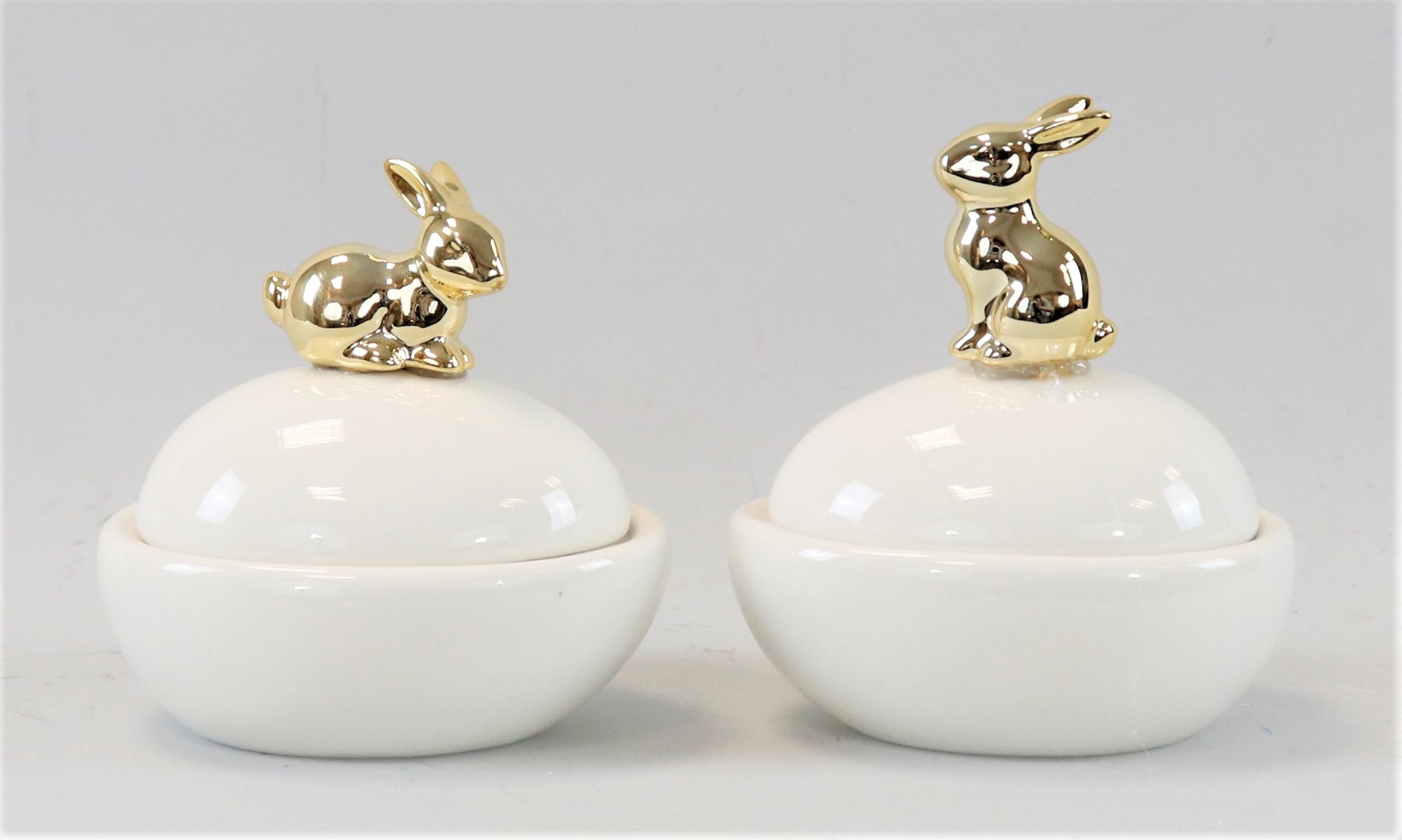- Elegant 2-piece ceramic set with golden bunny motif