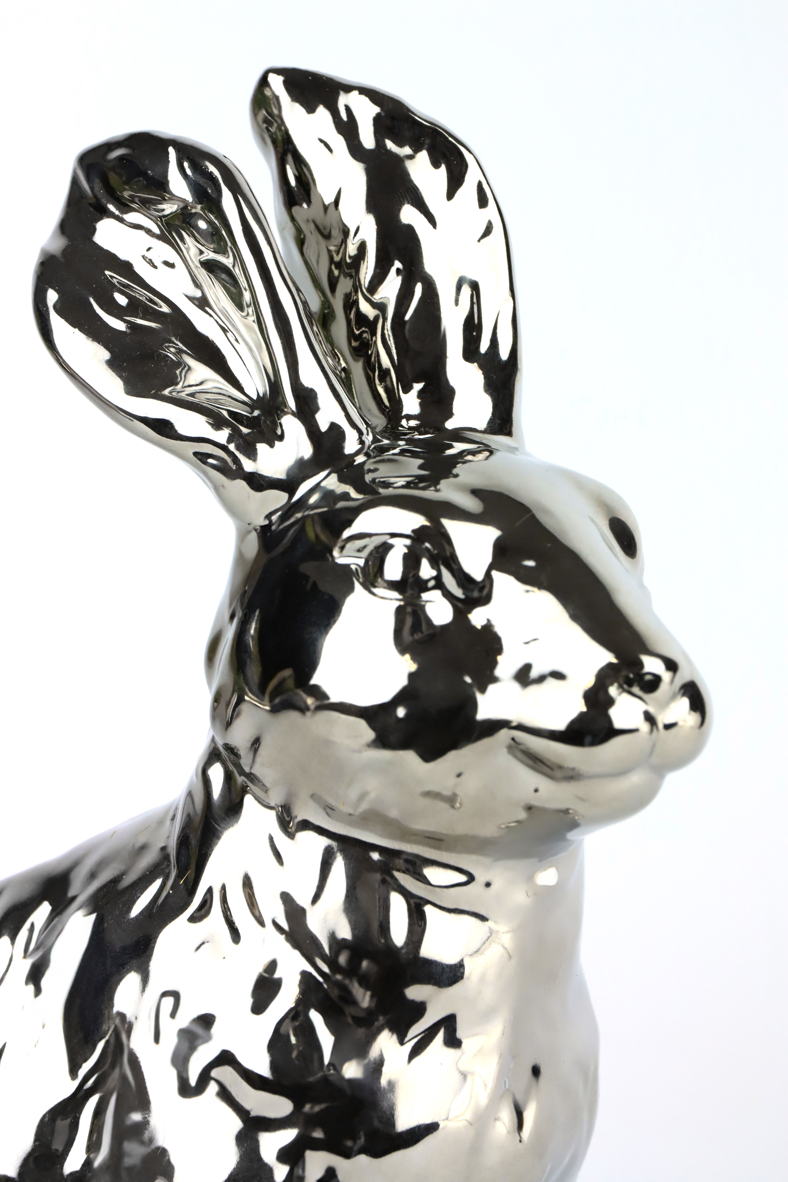 ENWelcome to your exclusive collection for the Easter season: the "Silver Rabbit" vase. This exquisite vase made of fine ceramic is more than just a piece of jewellery for your interior. It combines functionality and aesthetic design, making it perfect for stationary retail in the home and lifestyle sector. Your customers will be delighted by this vase, which is around 23 cm high and depicts an elegant silver rabbit - a real eye-catcher for any home.
