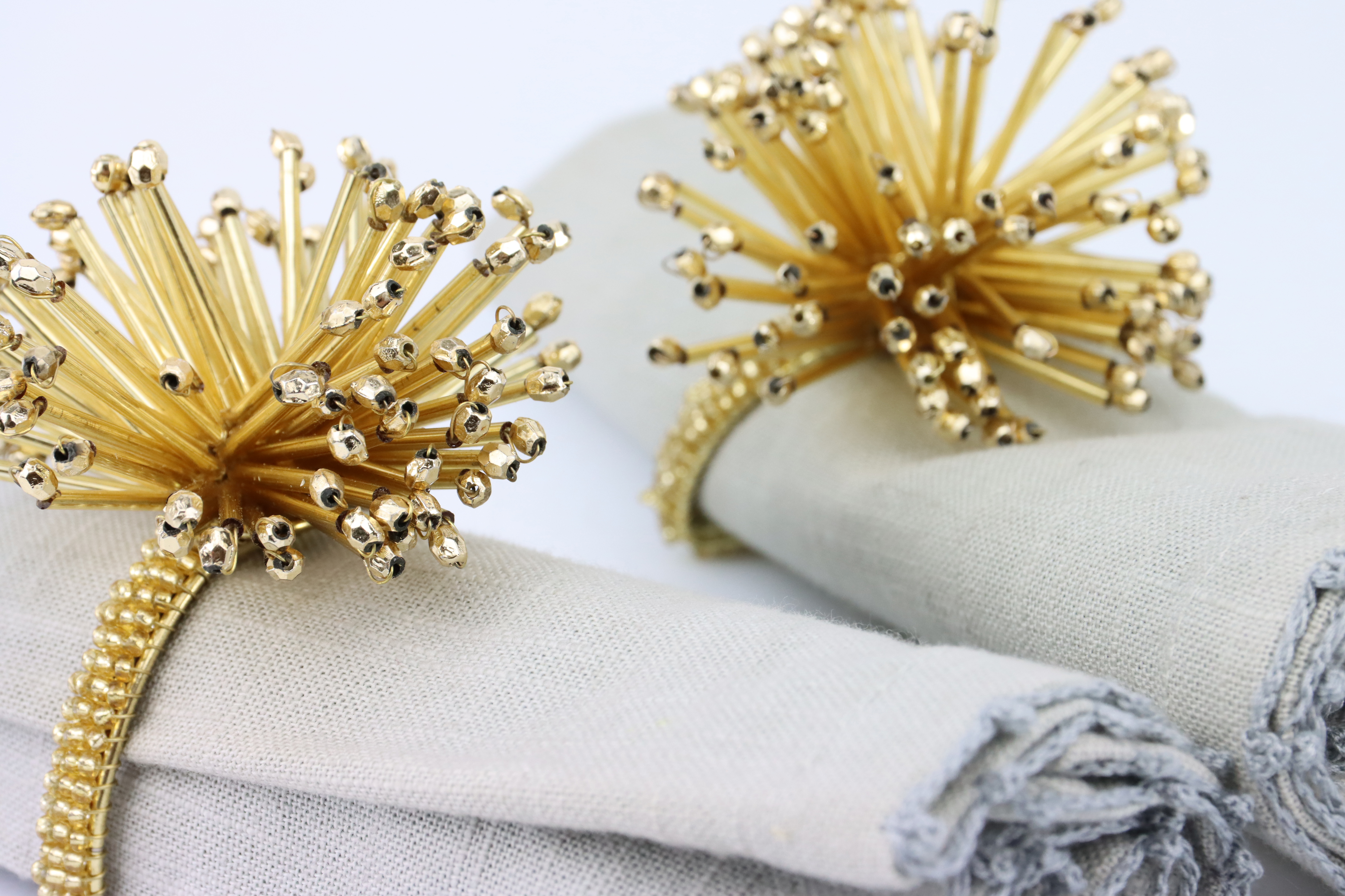 El cálido dorado de los servilleteros "Splash" evoca inmediatamente asociaciones con acogedoras veladas junto al crepitar de la chimenea y glamurosas fiestas navideñas. Con un diámetro de unos 8 cm, son lo suficientemente llamativos como para captar la atención en cualquier mesa, pero lo suficientemente discretos como para no eclipsar su vajilla y cubertería.