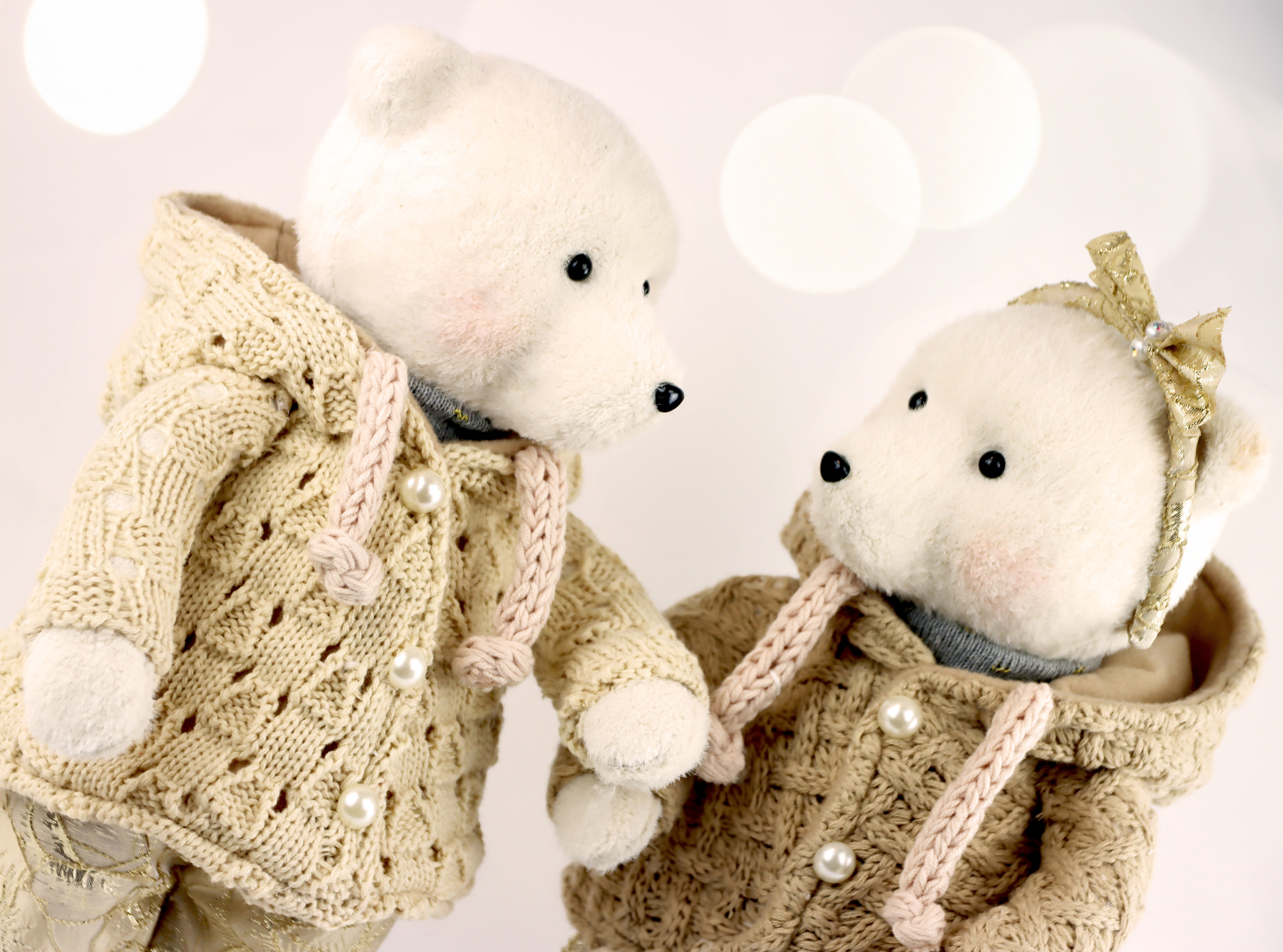 - Set de dos osos con jersey de punto marrón