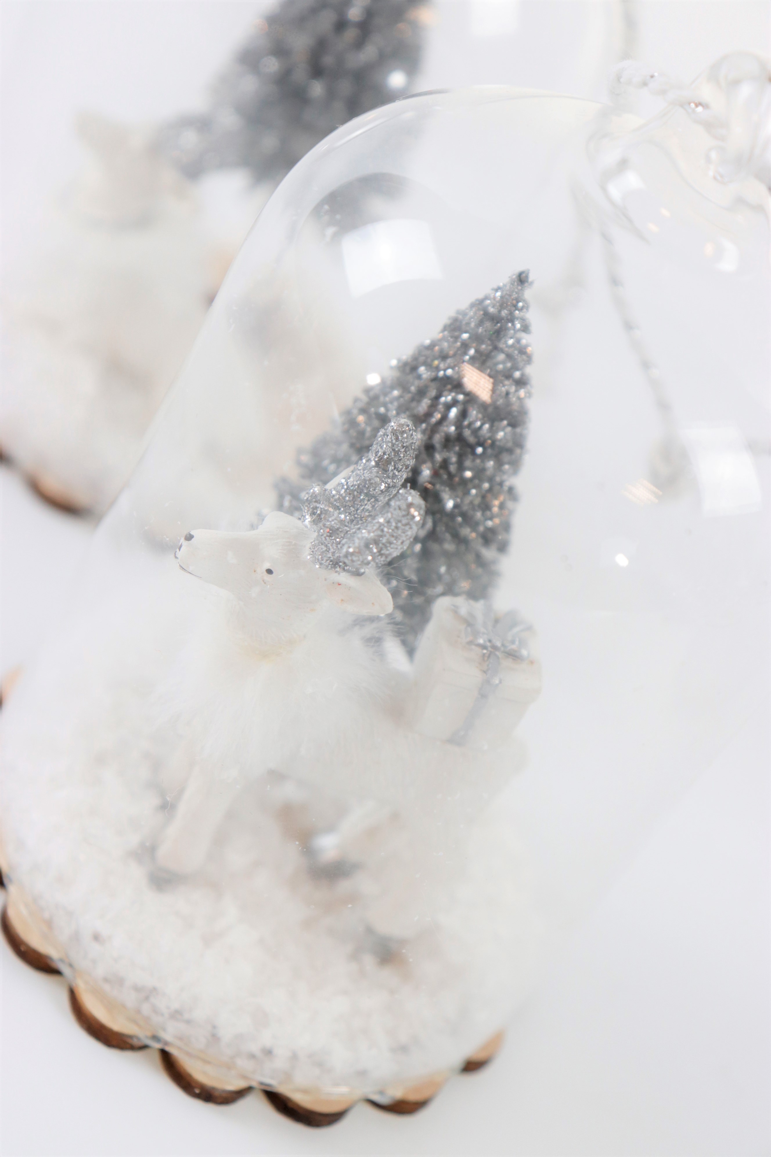- Reno cuidadosamente modelado en blanco bajo una campana de cristal transparente