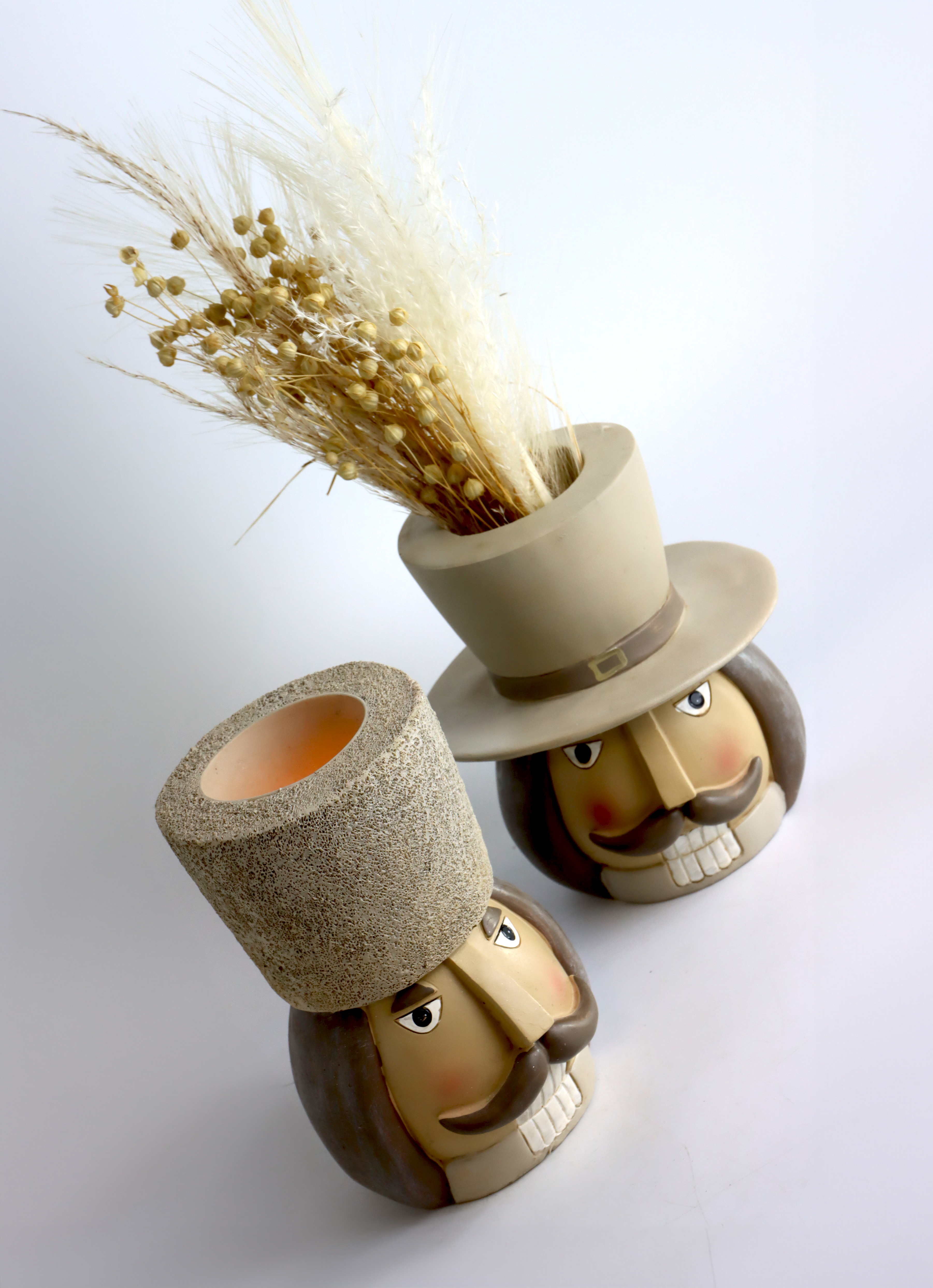 Descubra nuestro exclusivo juego de candelabros "NUTCRACKER", formado por dos elegantes cabezas de cascanueces. Este set especial es ideal para la época navideña, para crear un ambiente festivo y elegante para sus clientes. Los candelabros tienen una altura aproximada de 16,5 cm y están fabricados en poliresina de alta calidad, conocida por su durabilidad y detallada elaboración. Estos candelabros encajan a la perfección en el interior de cualquier hogar y estilo de vida, ya sea en el salón, en la zona de entrada o como elemento destacado en la mesa festiva.