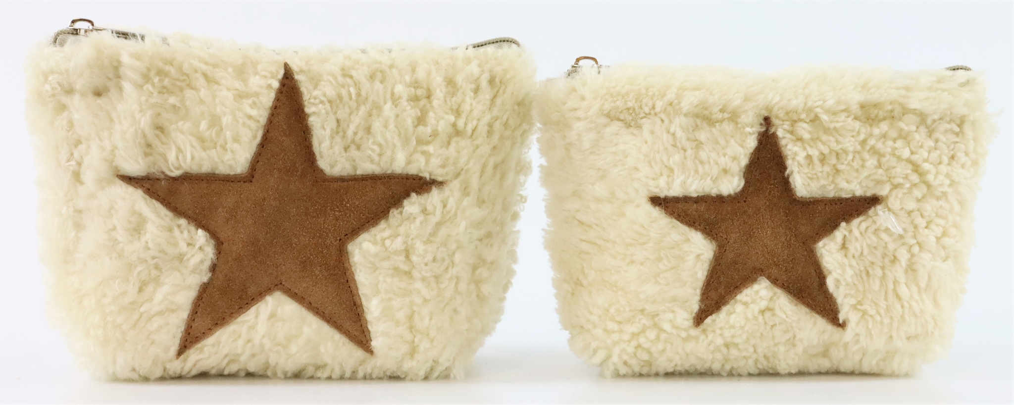 Nuestros bolsos de piel de cordero son excepcionales porque son una mezcla de cuero y piel de cordero natural. A sus clientes les encantará y apreciarán la fina textura y la cuidada confección de estos detalles de decoración. El motivo "estrella" de estos bolsos les da un toque especial y encajan perfectamente en la temporada otoño/invierno. Miden 18 cm y 15 cm, son compactos y encajan a la perfección en cualquier interior.