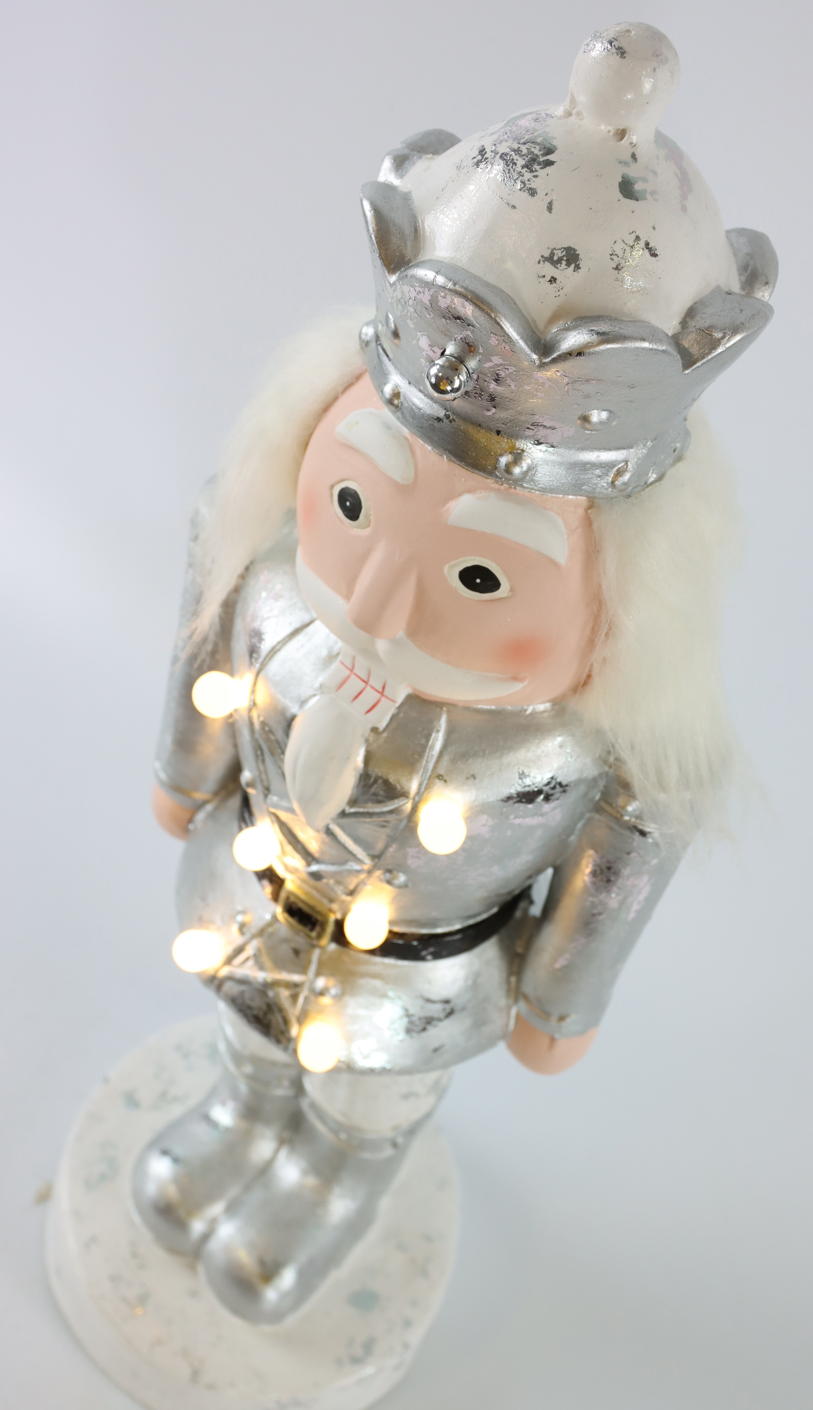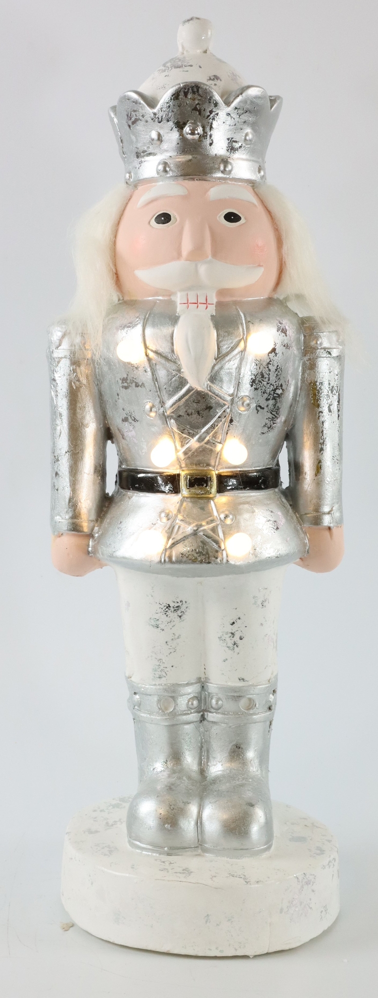 La figura LED, fabricada en magnesia y cerámica de alta calidad, impresiona con su detallado diseño en elegante plata. Este elegante juego de colores se adapta sin esfuerzo a cualquier estilo de decoración y eleva el ambiente navideño a un nuevo nivel. Gracias a la iluminación LED integrada, podrá crear acentos luminosos específicos que realcen realmente la presentación de sus productos. El económico funcionamiento a pilas garantiza flexibilidad en la colocación, sin molestos cables. Esto significa que puede exponer estratégicamente el cascanueces en cualquier lugar de la tienda.