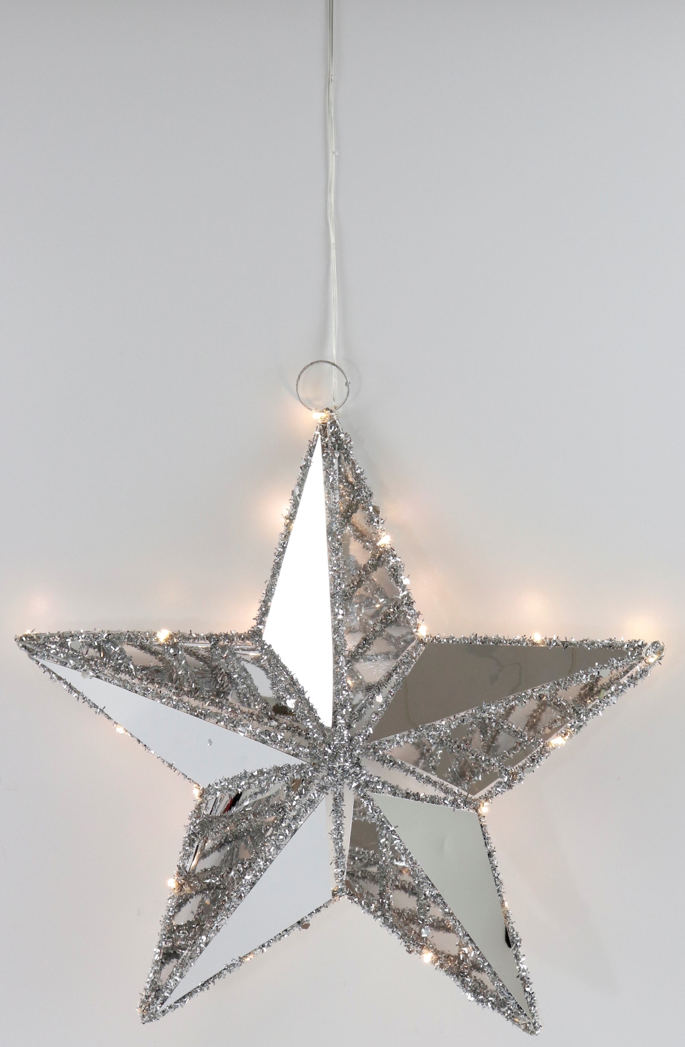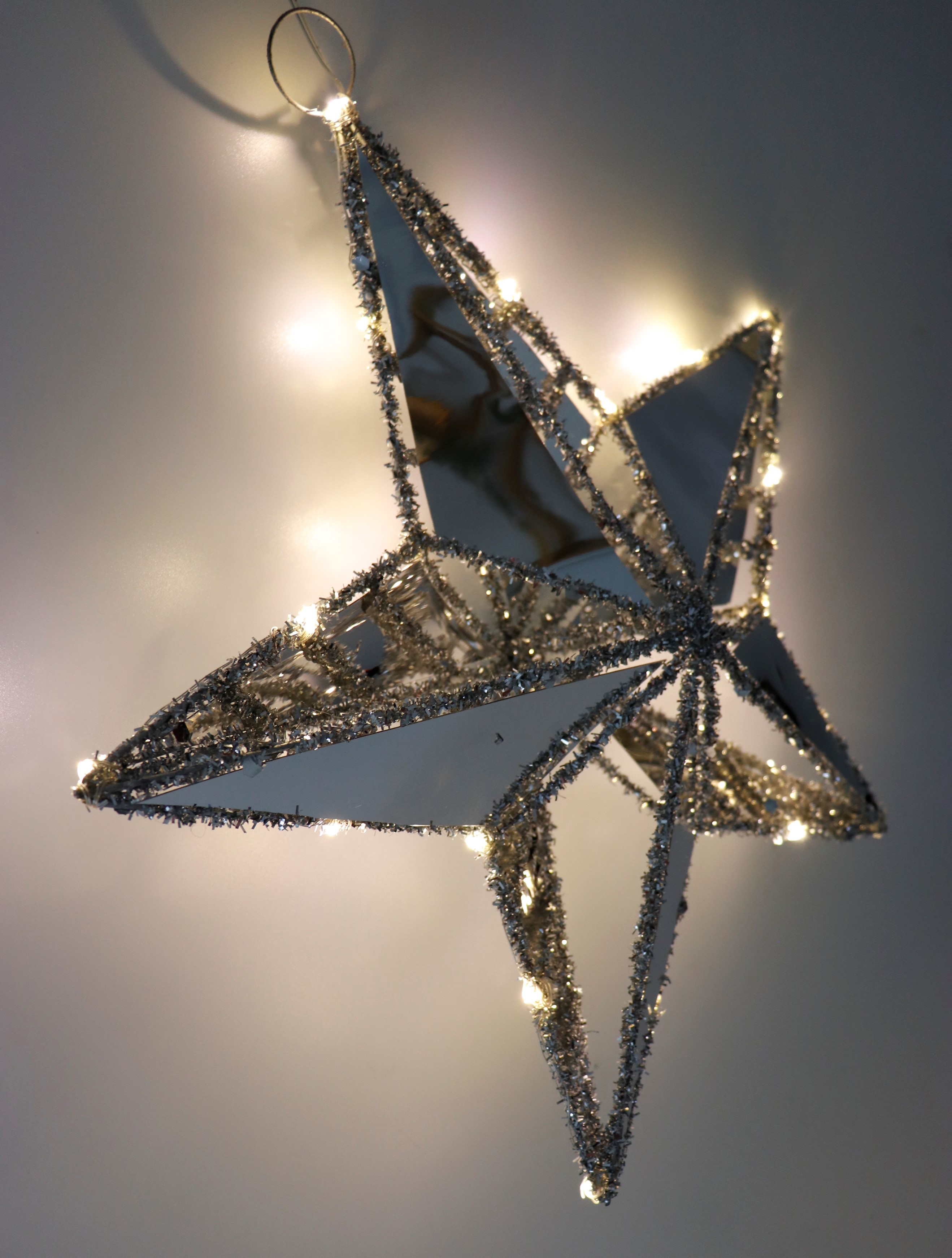 - Estrella iluminada por LED de alta calidad con superficie reflectante y borde plateado