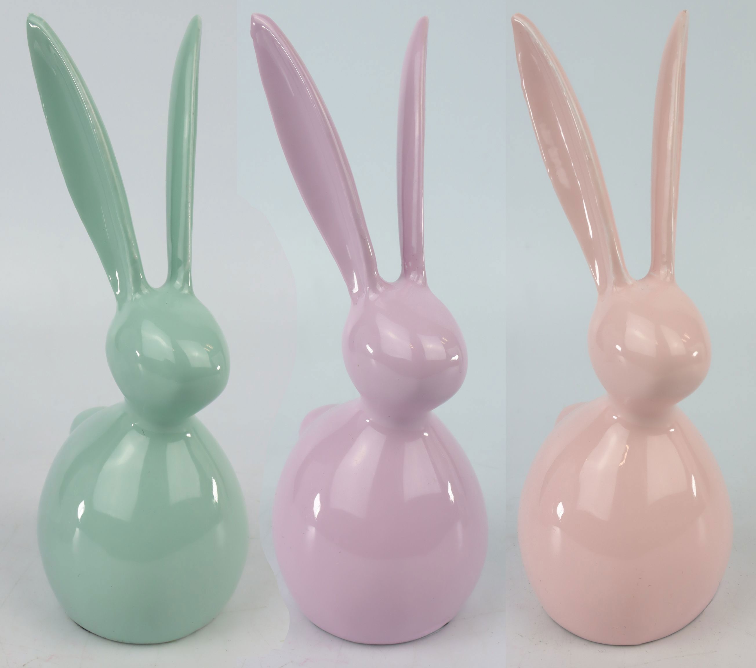 - Juego de conejitos de metal de alta calidad con tres figuras en armoniosos colores pastel