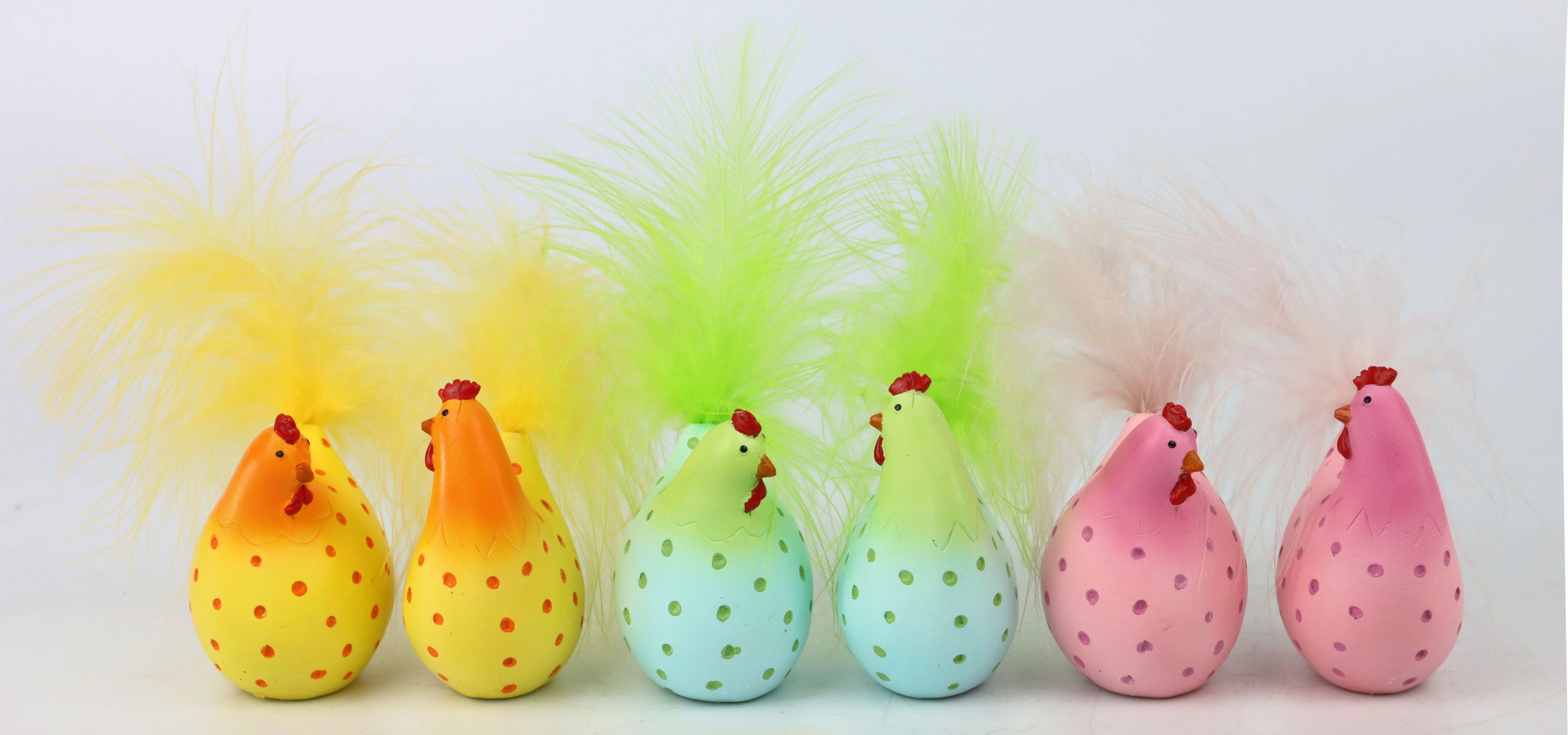 - Set de seis pollos de poliresina de alta calidad, ideal para decoraciones de Pascua estacionales