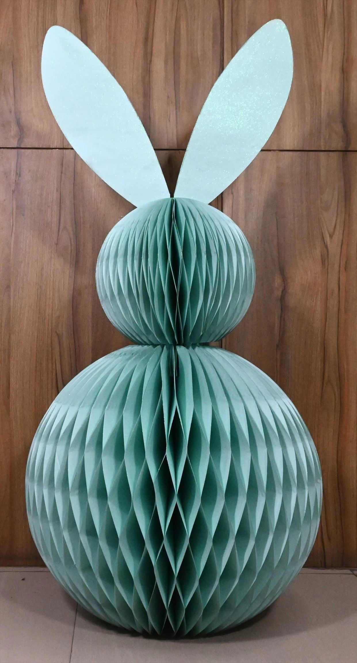 ES**Descripción del producto: CONEJO DECO "HONEYCOMB" 80cm de papel azul para Pascua**.