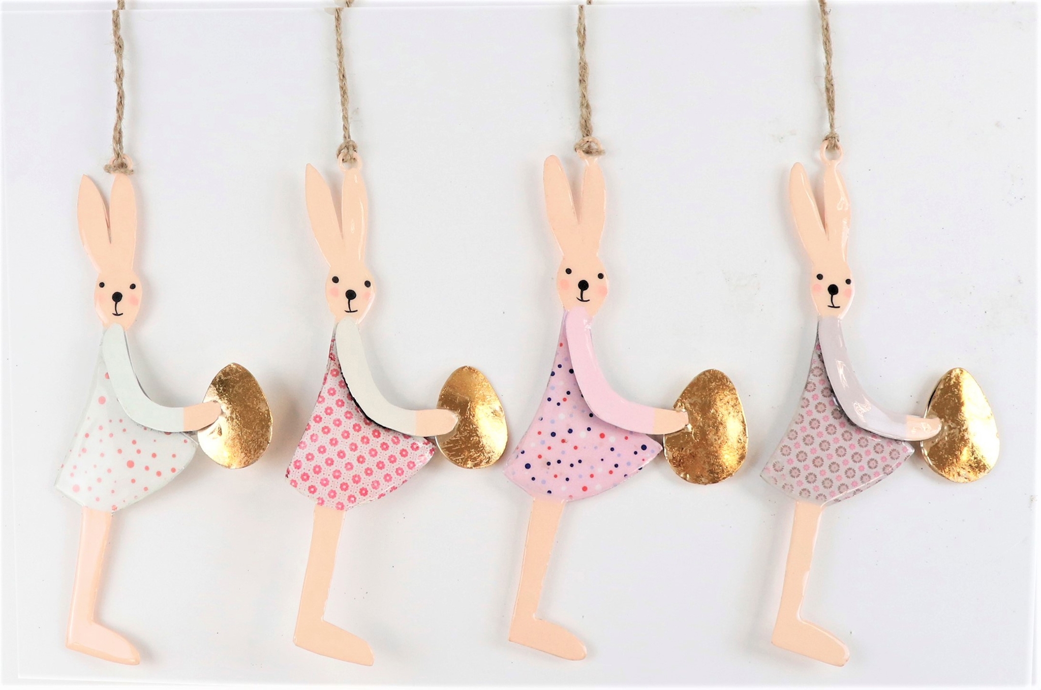 Amplía tu selección de decoración de temporada con nuestro encantador colgador de adornos "CONEJOS" S/4, especialmente diseñado para la temporada de Pascua. Este exquisito juego de cuatro adornos colgantes aportará encanto festivo a cualquier hogar y tienda de estilo de vida. Los conejitos de diseño delicado hechos de chapa de metal resistente no sólo son un punto de atracción visual, sino que también irradian un carácter nostálgico y juguetón que encaja a la perfección con el ambiente primaveral.