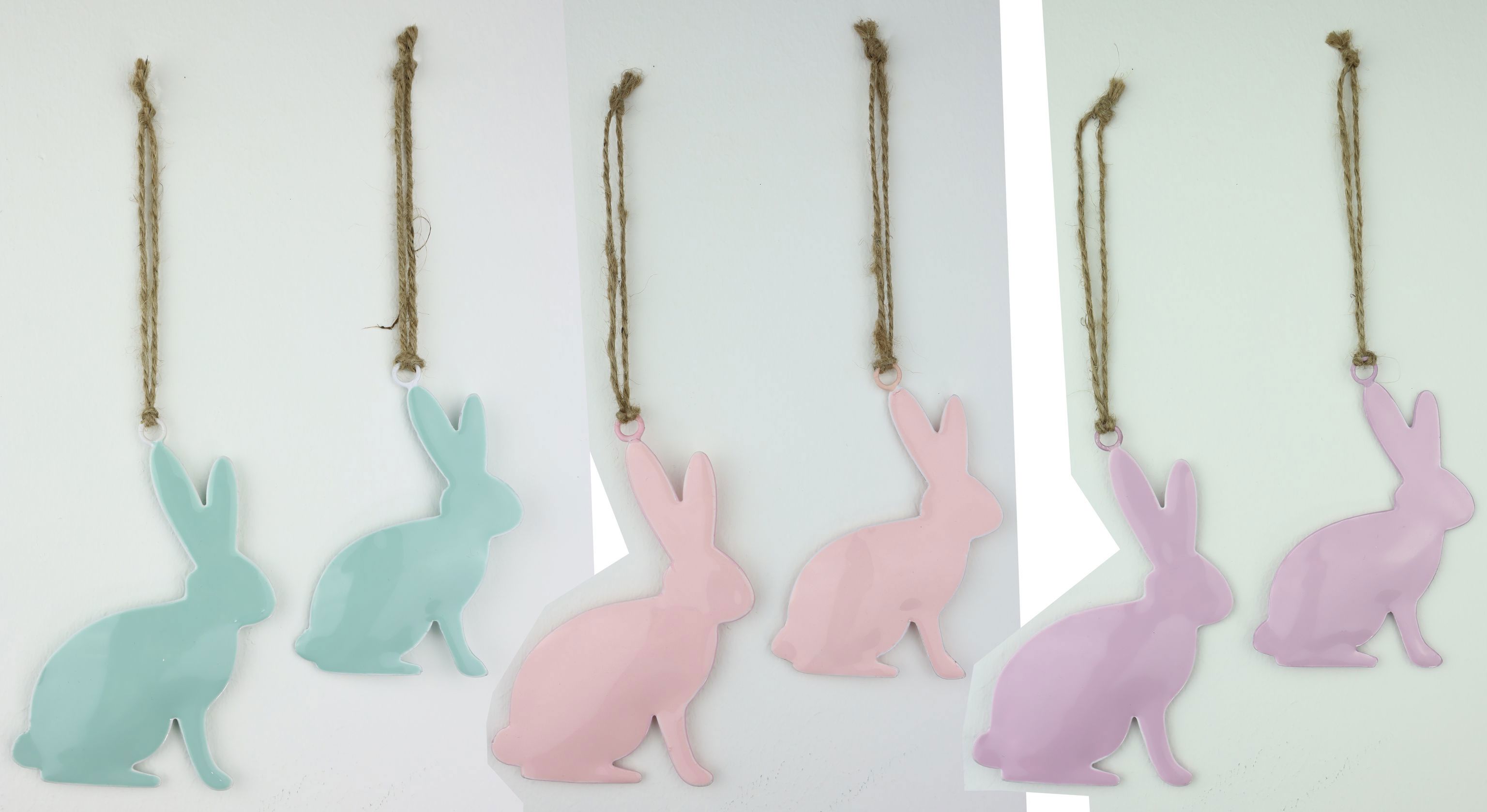 ES### Descripción del producto: COLGADOR DE METAL "BUNNY" S/6 - Decoración de Pascua para el comercio minorista
