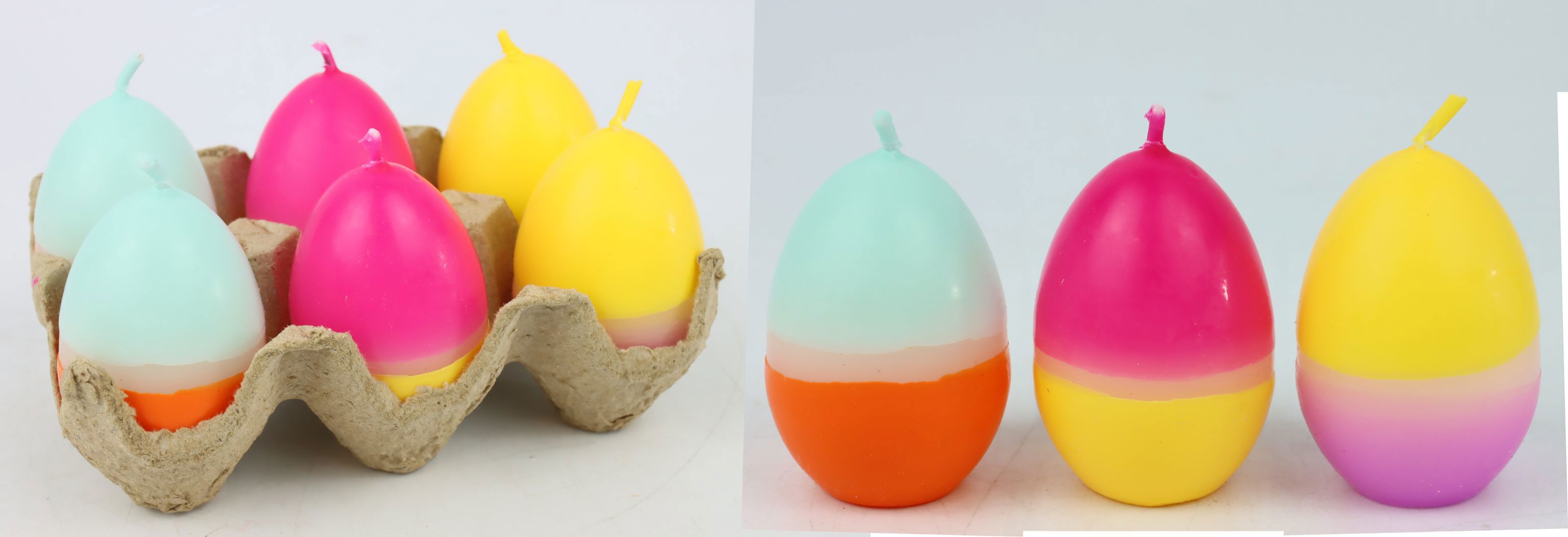 - Set de 6 coloridas velas huevo, ideales para la decoración de Pascua y primavera