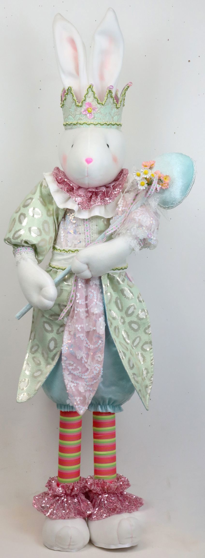 La MUJER CONEJO "CARNAVAL DE PASCUA" está fabricada con materiales de alta calidad: La espuma de poliestireno proporciona una estructura estable, mientras que el algodón, el poliéster y el metal le dan un aspecto detallado y elegante. Su elaborado diseño recuerda a un alegre carnaval, perfecto para la temporada de primavera y Pascua. La conejita lleva un traje cuidadosamente diseñado con toques de color y tejidos finos. Sus expresivos rasgos faciales y sus accesorios cuidadosamente elaborados la convierten en un objeto decorativo único.
