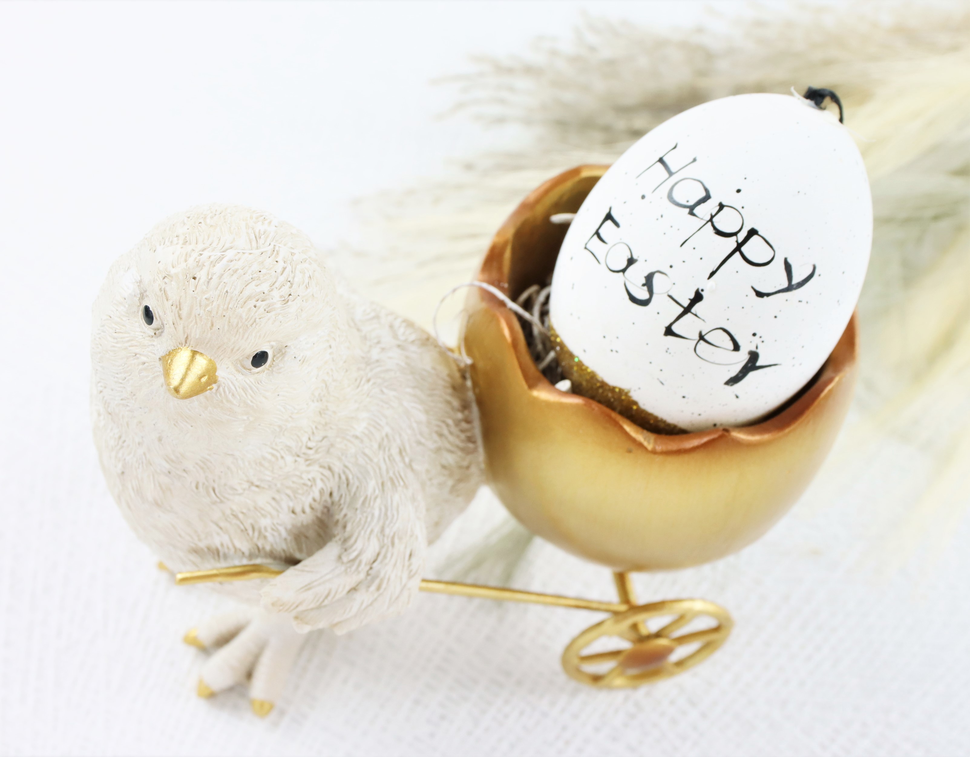 El set FIGURES "RACING CHICKS" impresiona por sus detalles cariñosos y un acabado de alta calidad que hará las delicias de los clientes más exigentes. Cada pollito mide aproximadamente 12,5 cm de alto e impresiona por su alegre diseño con una carretilla de huevos, que recuerda la tradicional celebración de Pascua. La superficie cuidadosamente pintada a mano confiere a las figuras un aspecto animado y lleva el encanto de la Pascua directamente a su tienda.