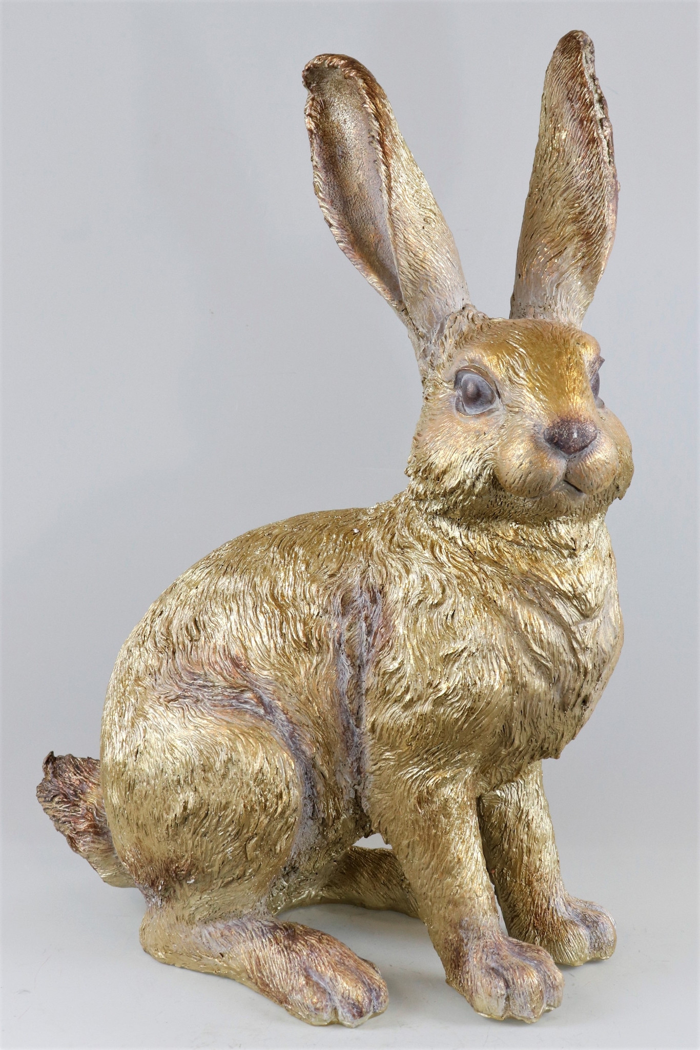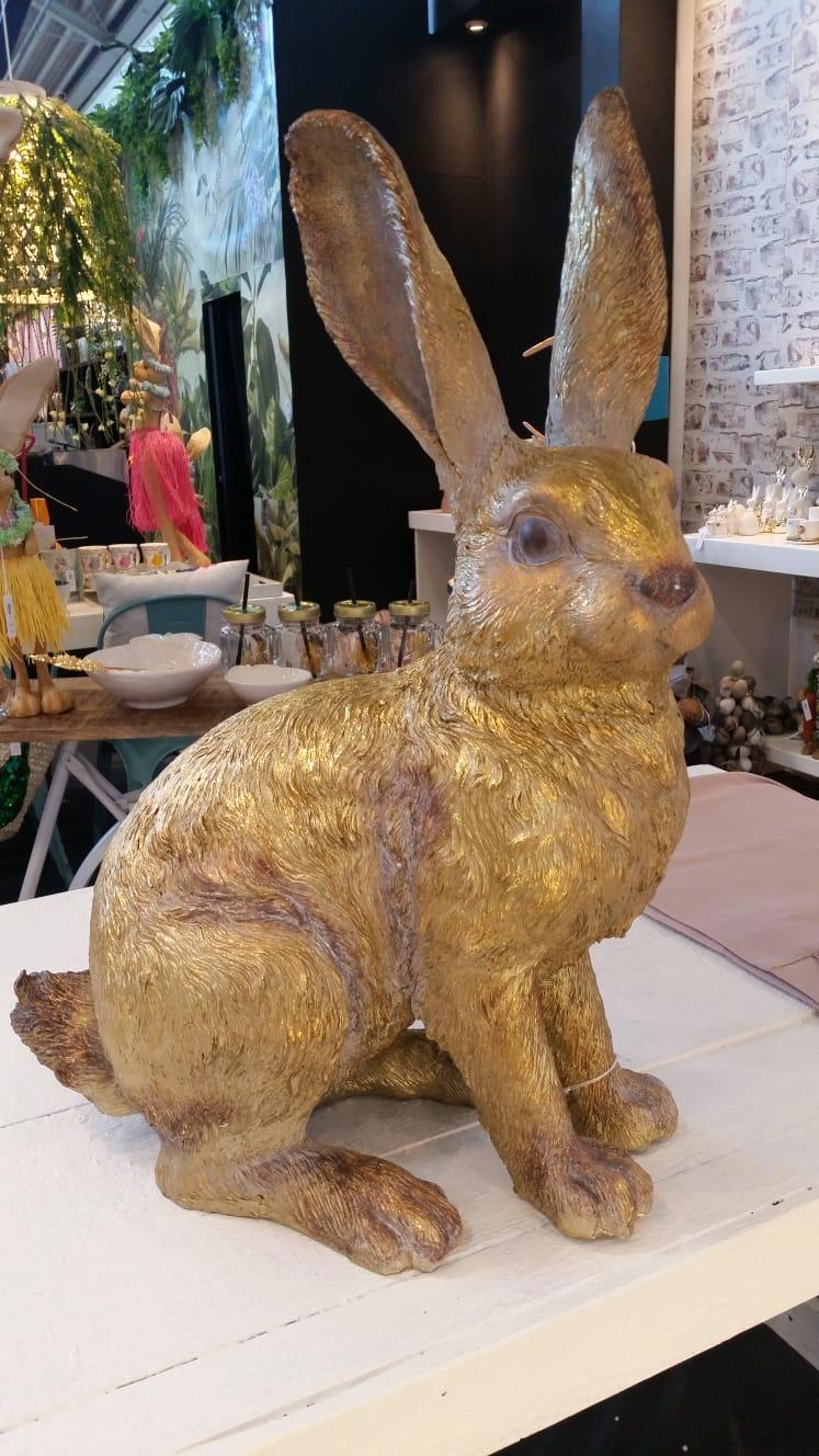 **Descripción del producto del conejo dorado "LUCKY" de poliresina:**