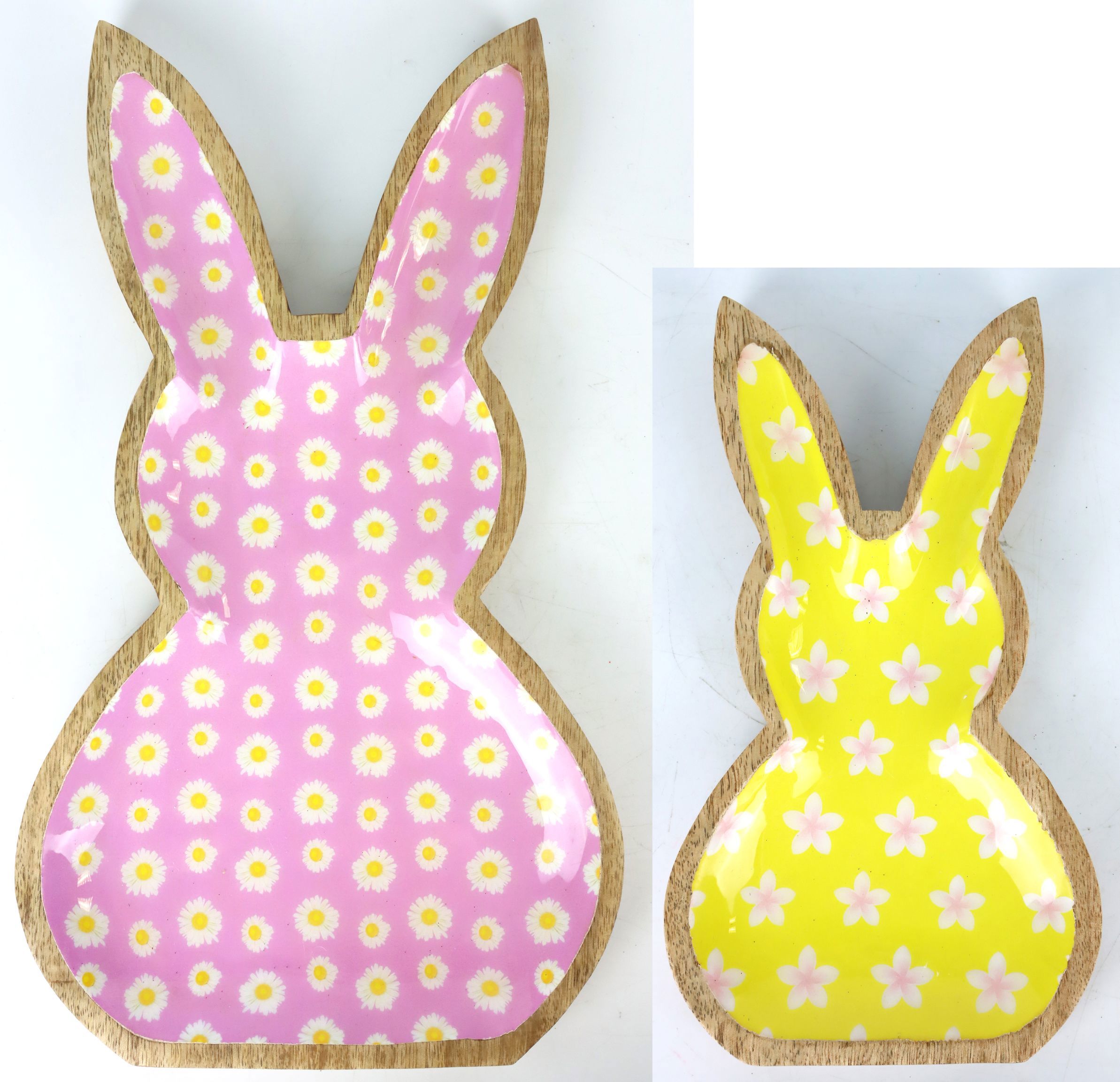 Enriquezca su oferta de Pascua con el exclusivo juego de 2 piezas de cuencos para conejitos "Buona Pasqua", que combinan el encanto de las obras de arte hechas a mano con la funcionalidad de la decoración moderna. Estos elegantes cuencos están hechos de madera de mango de alta calidad, que no sólo impresiona por su durabilidad, sino también por su cálido veteado natural. Los dos cuencos, que miden aproximadamente 24,5 cm y 34,5 cm, ofrecen versátiles opciones de presentación y son un verdadero reclamo en cualquier hogar o tienda de estilo de vida.