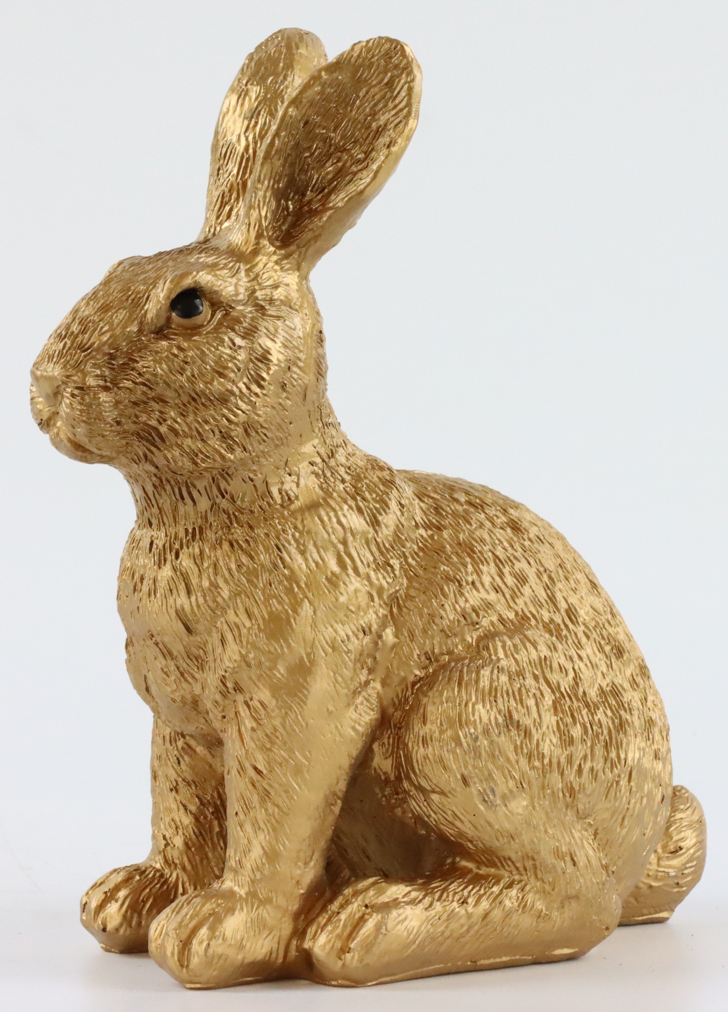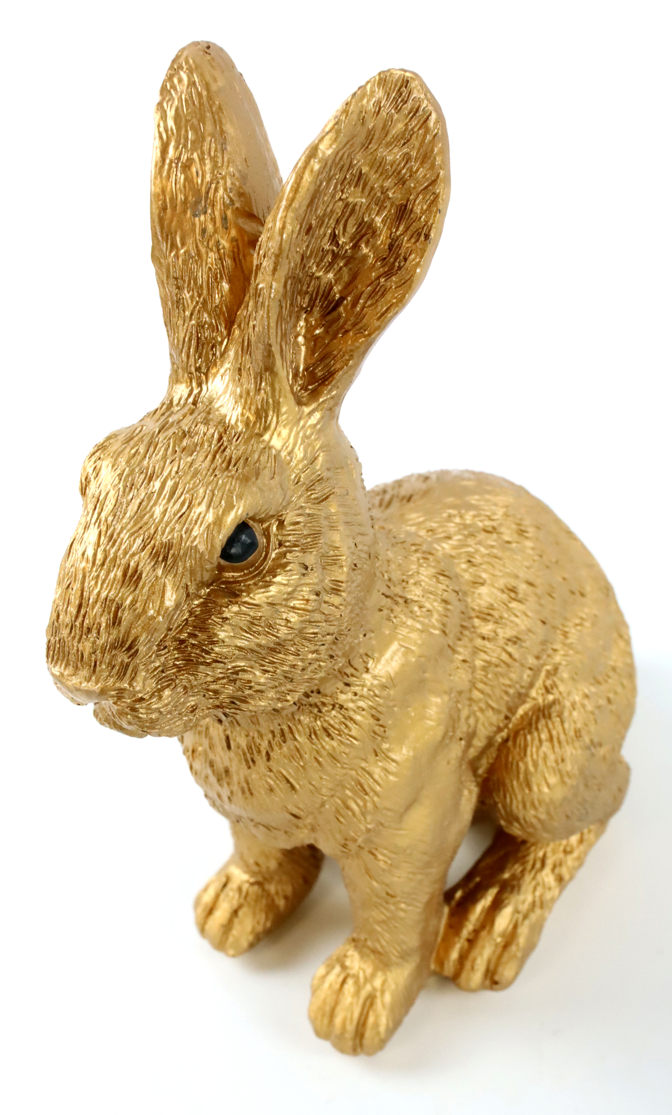 - Conejo de Pascua dorado fabricado en poliresina de alta calidad