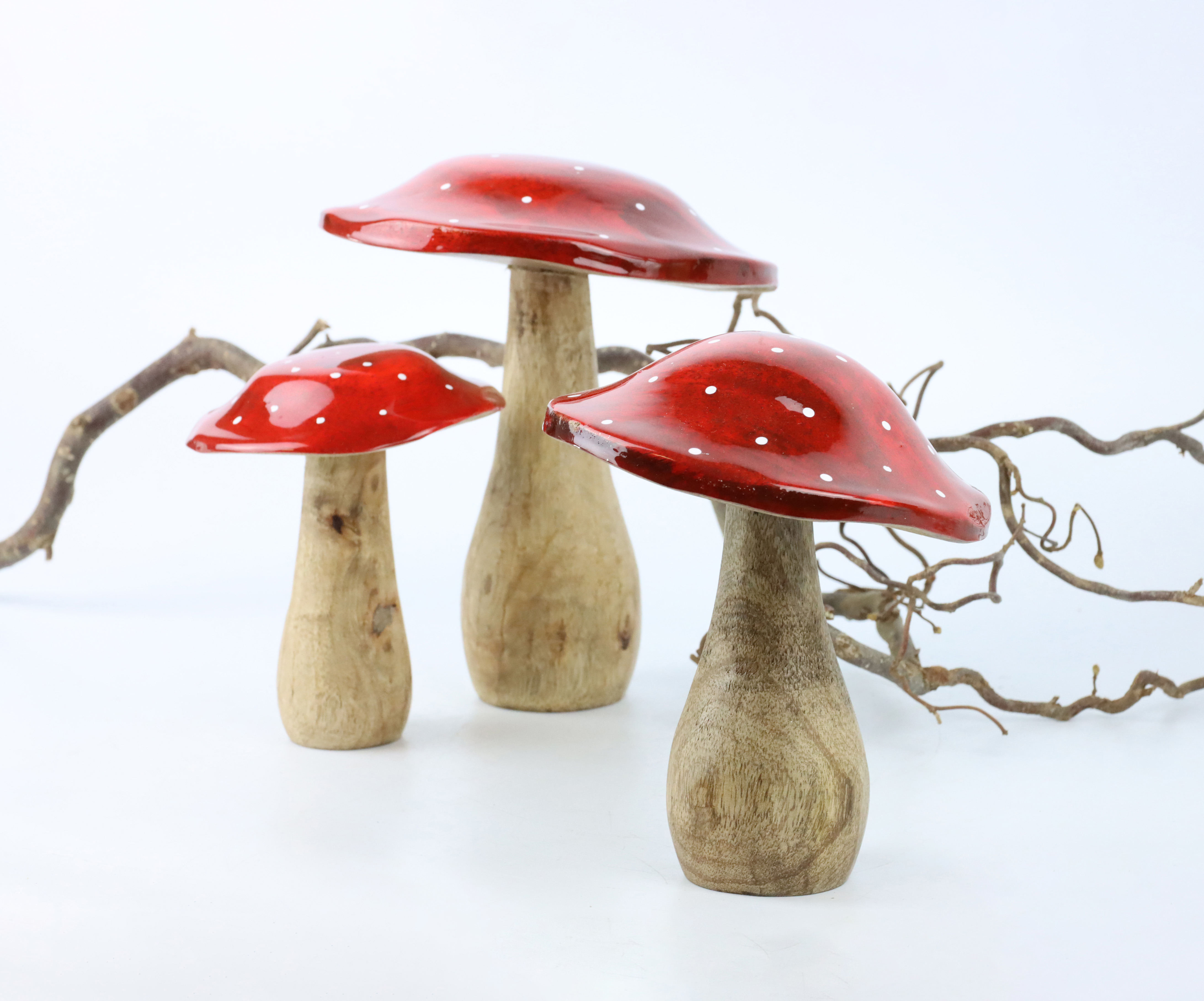 Las setas de madera de mango son una encantadora novedad en nuestra tienda en línea de comercio B2B, y atraen todas las miradas. Con unas medidas aproximadas de 18 cm, 15 cm y 12 cm, el diseño de nuestros productos refleja un alto nivel de artesanía y atención al detalle. La madera de mango confiere a estos productos una estética cálida y natural que hará que sus clientes se sientan como en casa durante la temporada de frío.