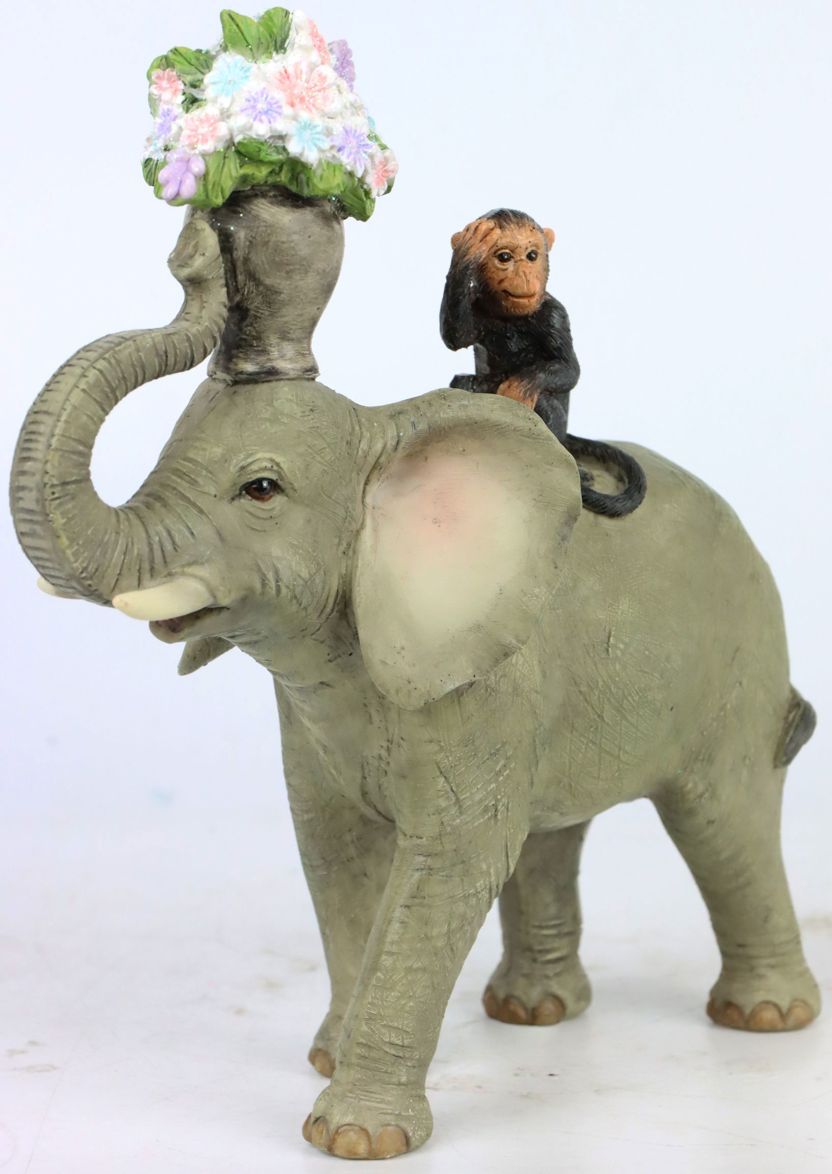 La FIGURE "CARNIVALE" séduit par sa finition en filigrane et la représentation vivante des deux animaux. L'éléphant symbolise la force et la sagesse, tandis que le singe incarne la joie de vivre et l'espièglerie. C'est cette merveilleuse combinaison de signification et d'esthétique qui fait de cette figurine un élément précieux dans un salon ou une vitrine.