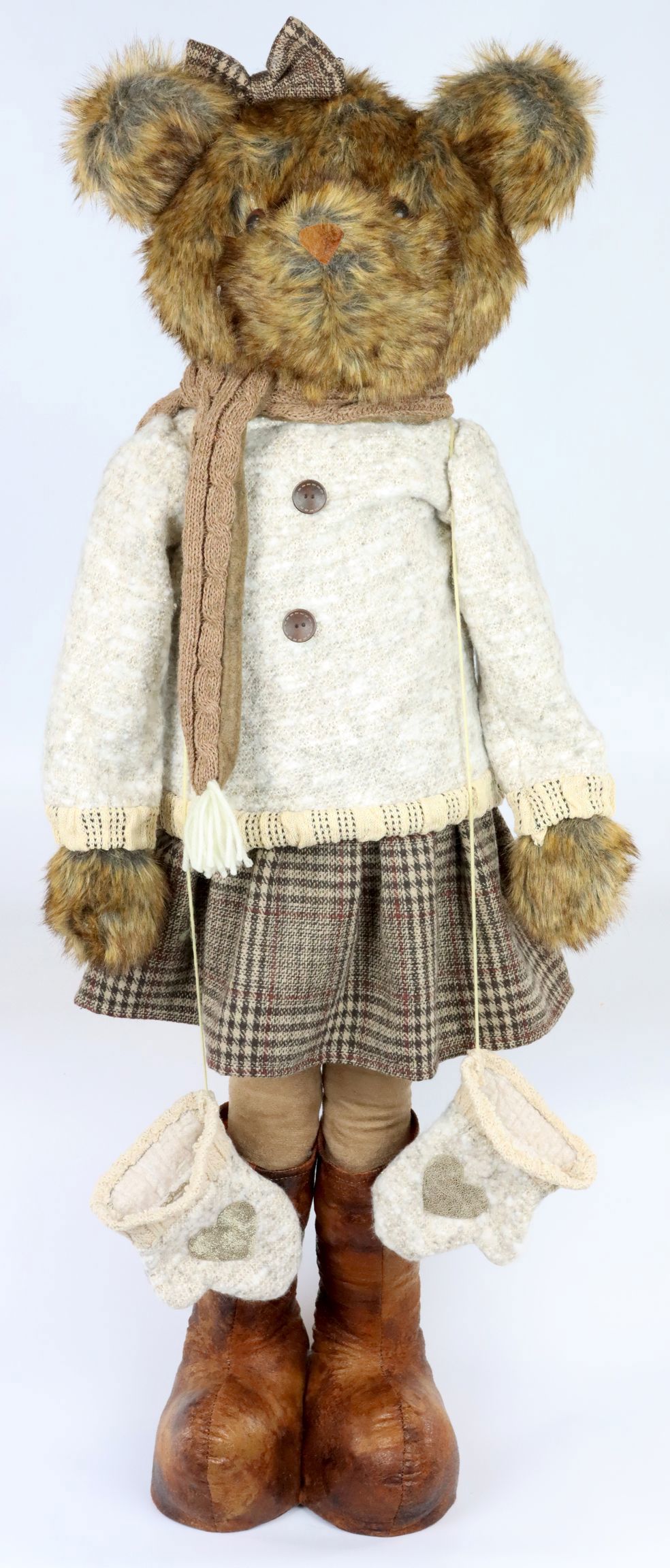Dans sa présentation de Noël, la dame aux ours dégage une atmosphère chaleureuse et confortable et apporte une touche de charme nostalgique dans chaque intérieur. Elle convient parfaitement comme décoration dans votre magasin, comme accroche-regard dans votre vitrine ou comme offre attrayante pour vos clients pour une décoration de Noël individuelle à la maison.