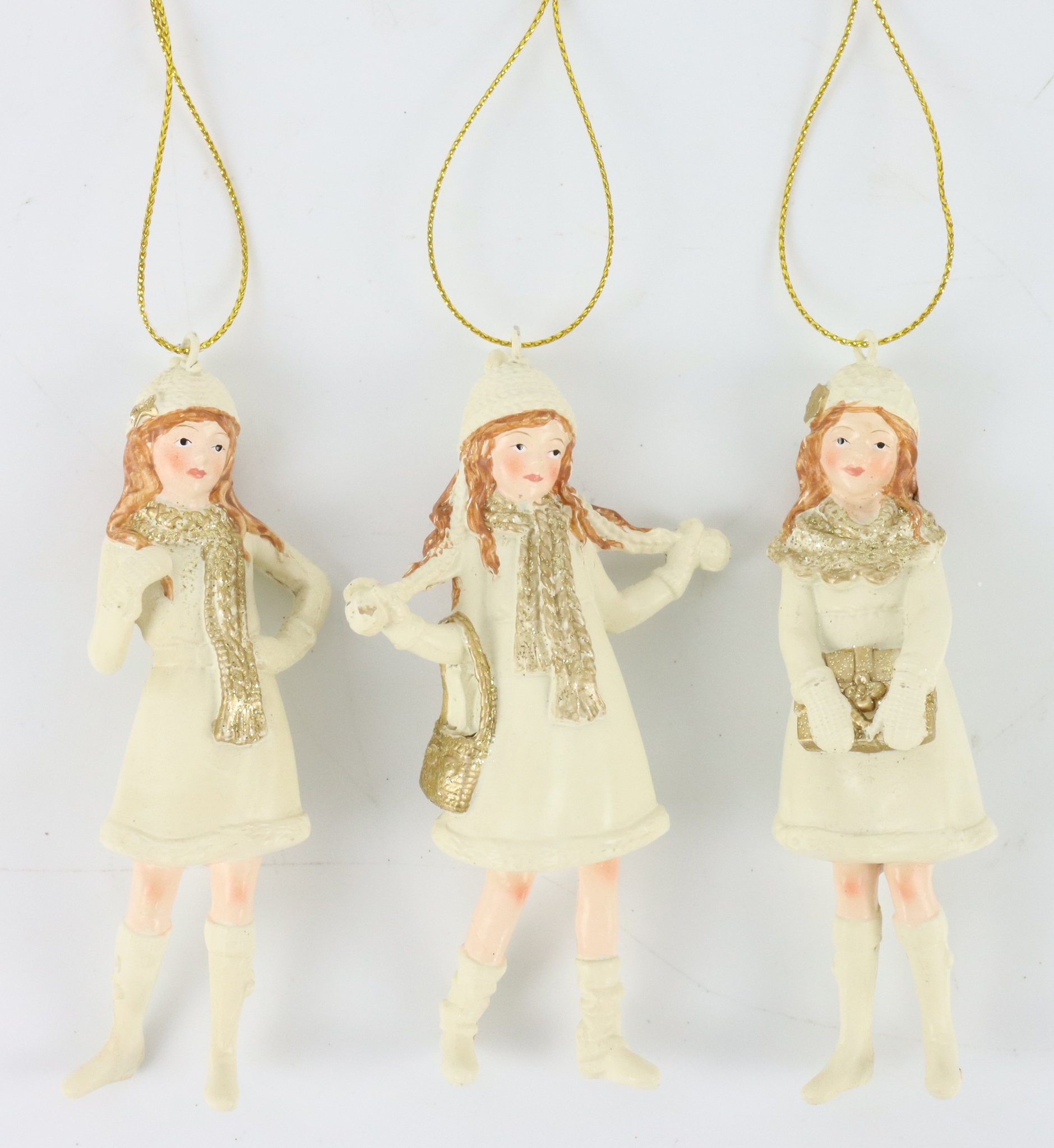 Vivez la magie particulière de la période de Noël avec notre exquis set de pendentifs décoratifs "Jultime". Ce set de trois pièces, composé de ravissantes figurines de jeunes filles, apporte une touche de charme nordique dans chaque foyer et a été spécialement conçu pour le commerce de détail stationnaire dans le domaine de l'habitat et du style de vie. Les pendentifs décoratifs richement détaillés sont fabriqués en polyrésine robuste et convainquent par leur grande qualité et leur résistance. D'une taille d'environ 11 cm chacun, ils sont parfaits pour décorer de manière festive les sapins de Noël, les décorations de fenêtres ou pour compléter avec style les espaces de vente.