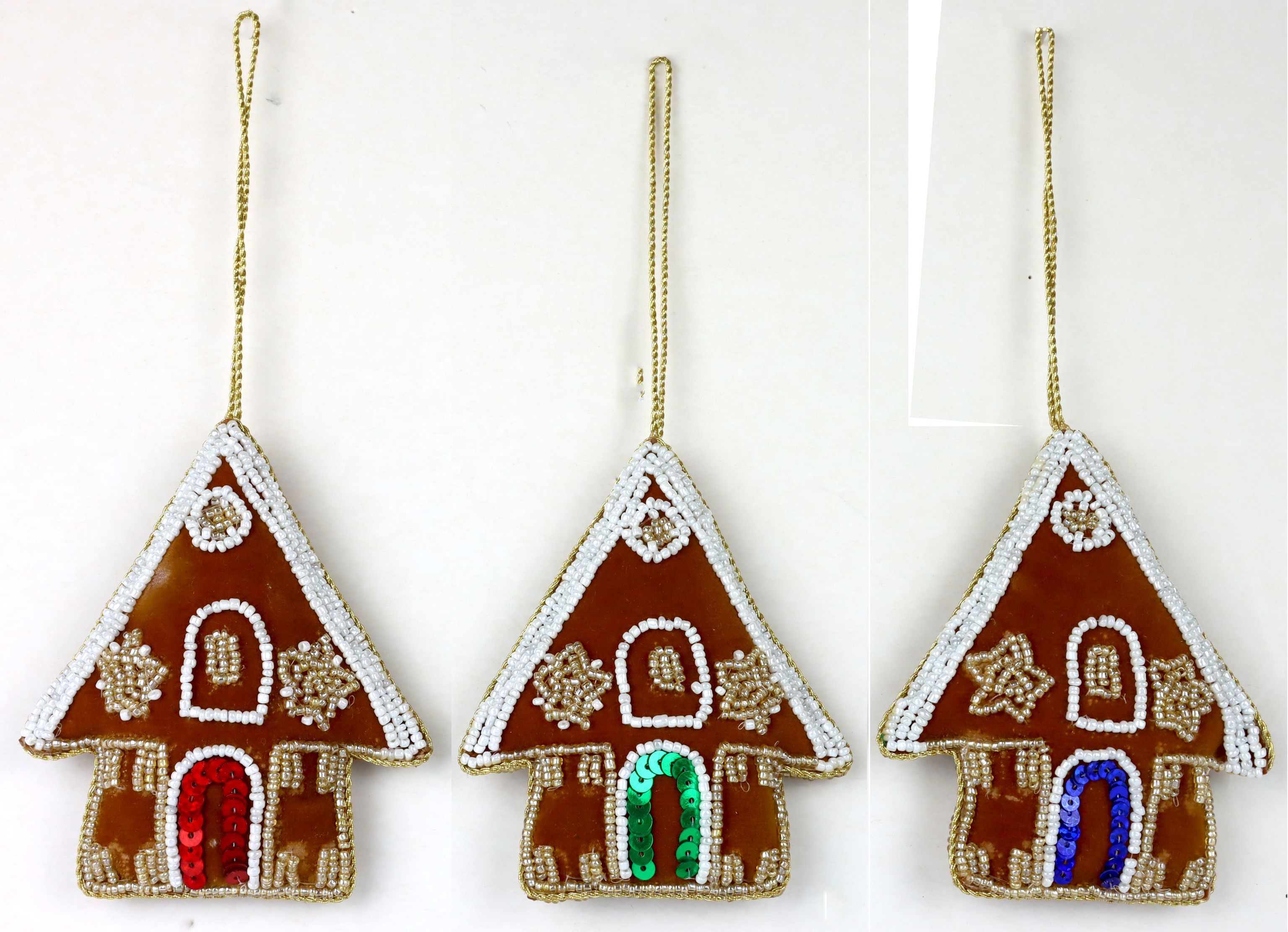 FR**Description du produit : Set de pendentifs en perles "Ginger House" (3 pièces) pour Noël**.