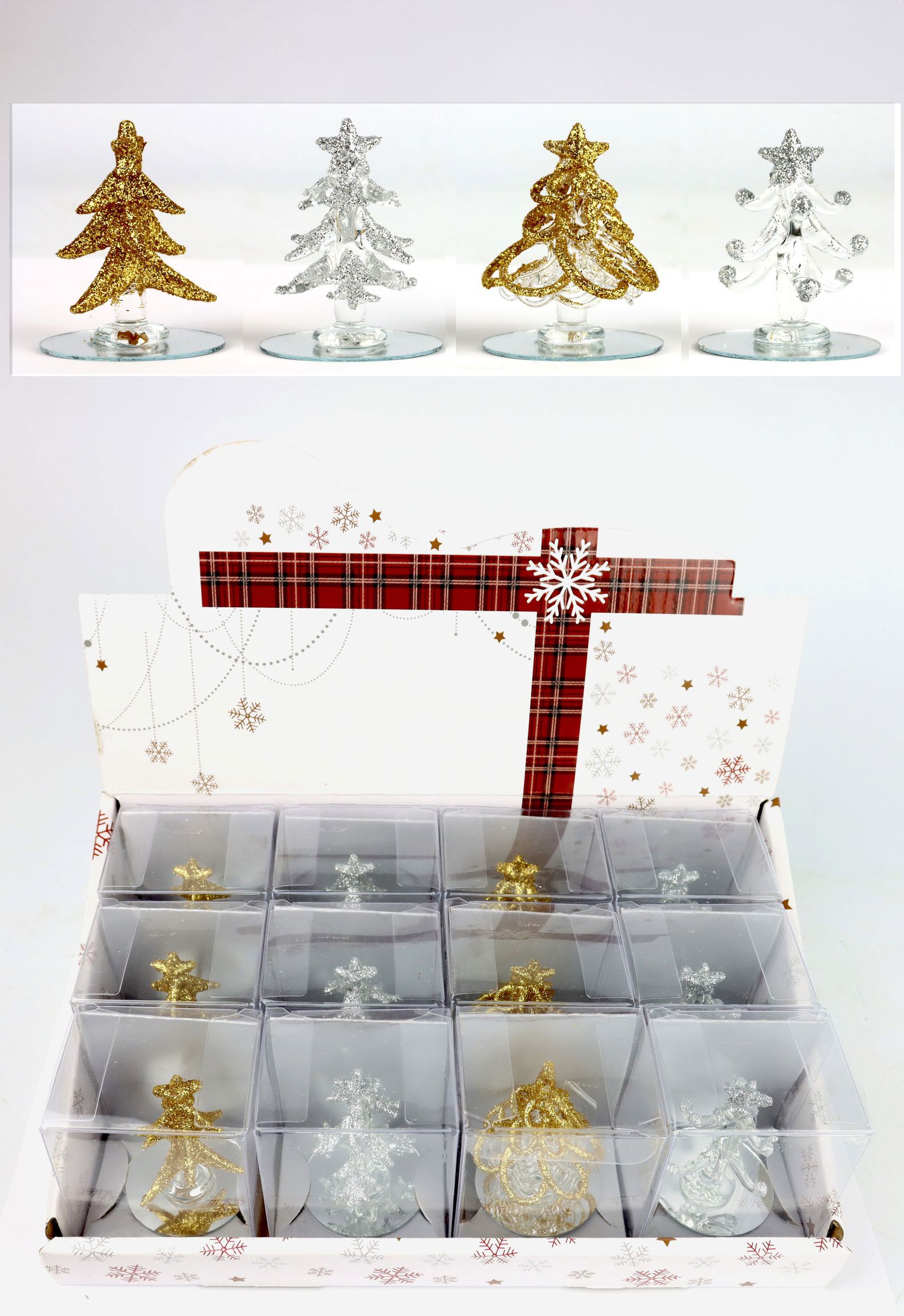 - Boîte présentoir de 12 pièces avec des arbres de Noël