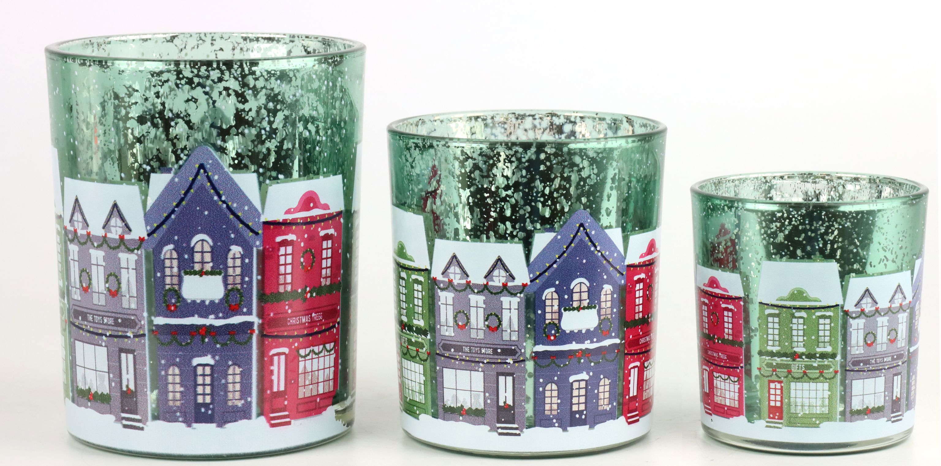 Les photophores sont d'une couleur verte attrayante qui brille aussi bien à la lumière des guirlandes lumineuses qu'à la lumière naturelle du jour. Dans chacune des trois tailles et formes différentes, les motifs de maisons racontent leur propre histoire et attirent magiquement le regard de vos clients. Qu'ils soient utilisés comme décoration de table ou placés sur un rebord de fenêtre, les photophores offrent une lumière apaisante et chaleureuse qui souligne l'ambiance hivernale.
