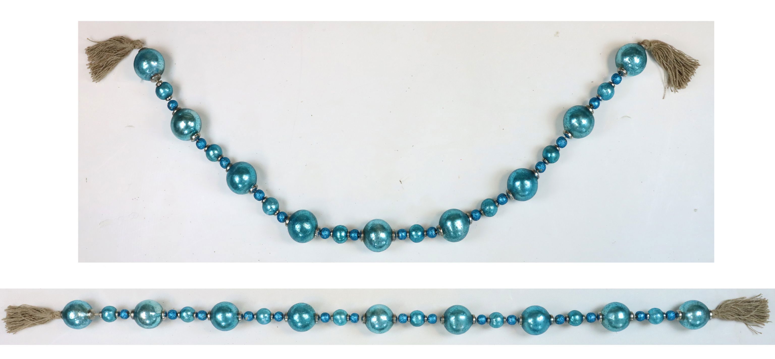 - Design exquis : la guirlande de boules "Carnival" enchante par son design unique en verre bleu-vert et en jute.