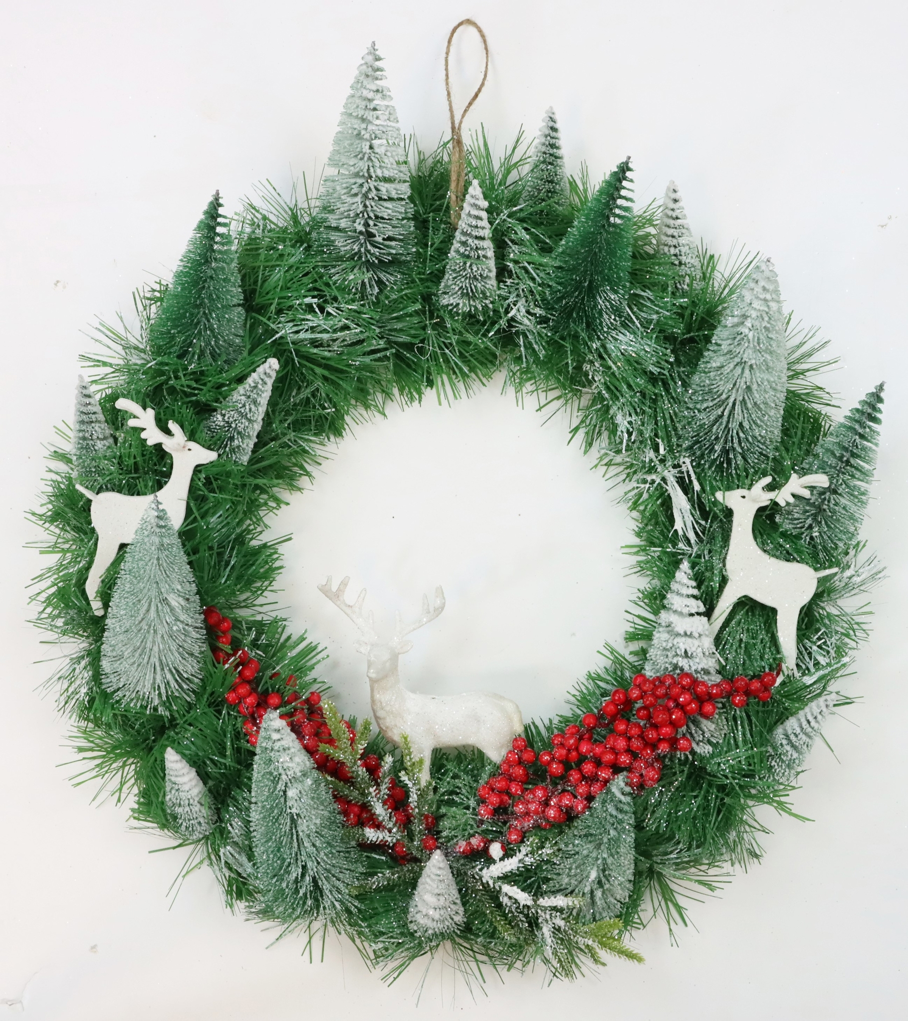- Couronne de Noël stylée avec des motifs de cerfs, idéale pour le commerce de détail stationnaire.