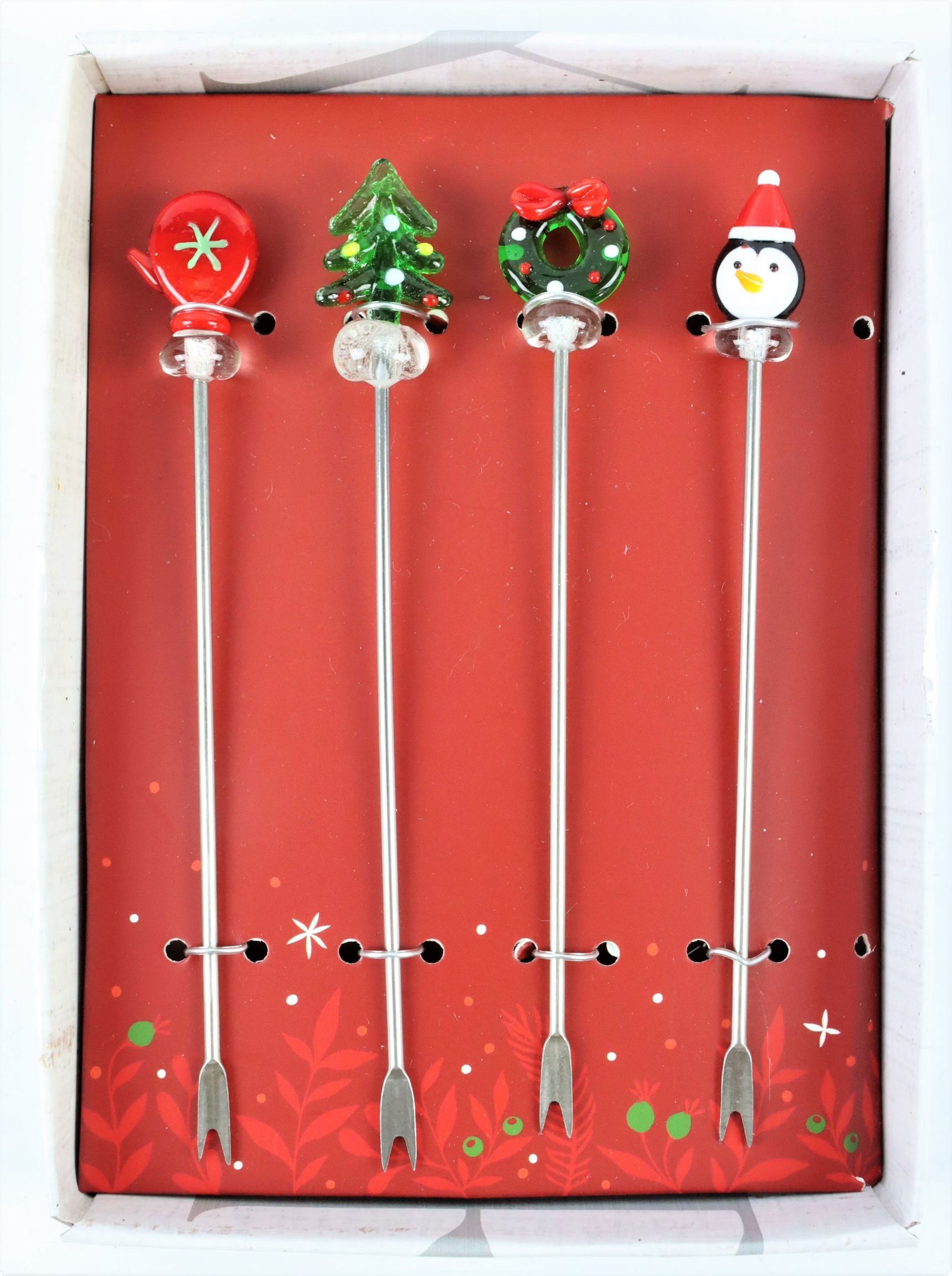 - Set de 4 piques de Noël en fer et en verre