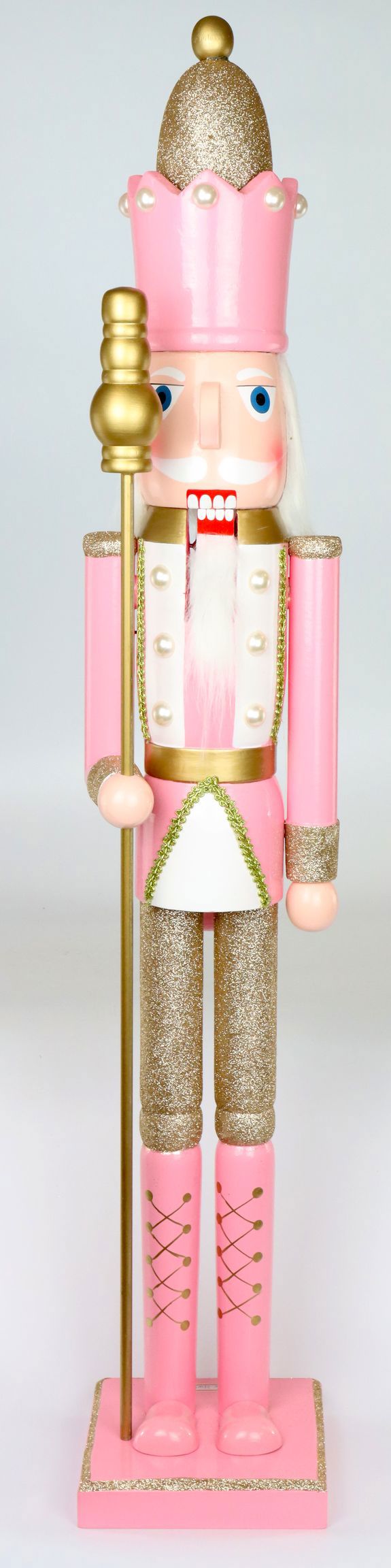 Découvrez l'incomparable casse-noix décoratif "Holly Jolly" en rose et vert pour la saison de Noël. Avec sa hauteur impressionnante de 90 cm, conçu en bois de haute qualité, ce casse-noisette deviendra un point fort festif dans votre magasin et apportera la magie de Noël dans chaque pièce.