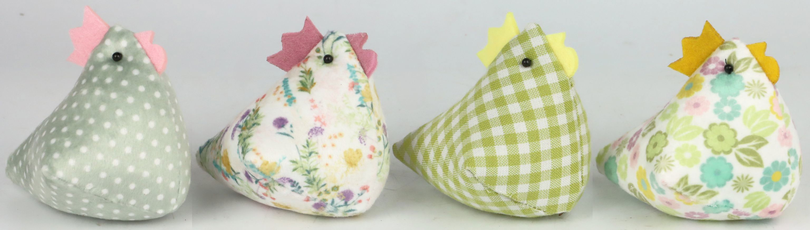 - Quatre charmantes figurines de poules, parfaites pour les décorations de Pâques.