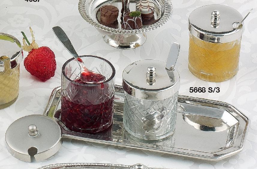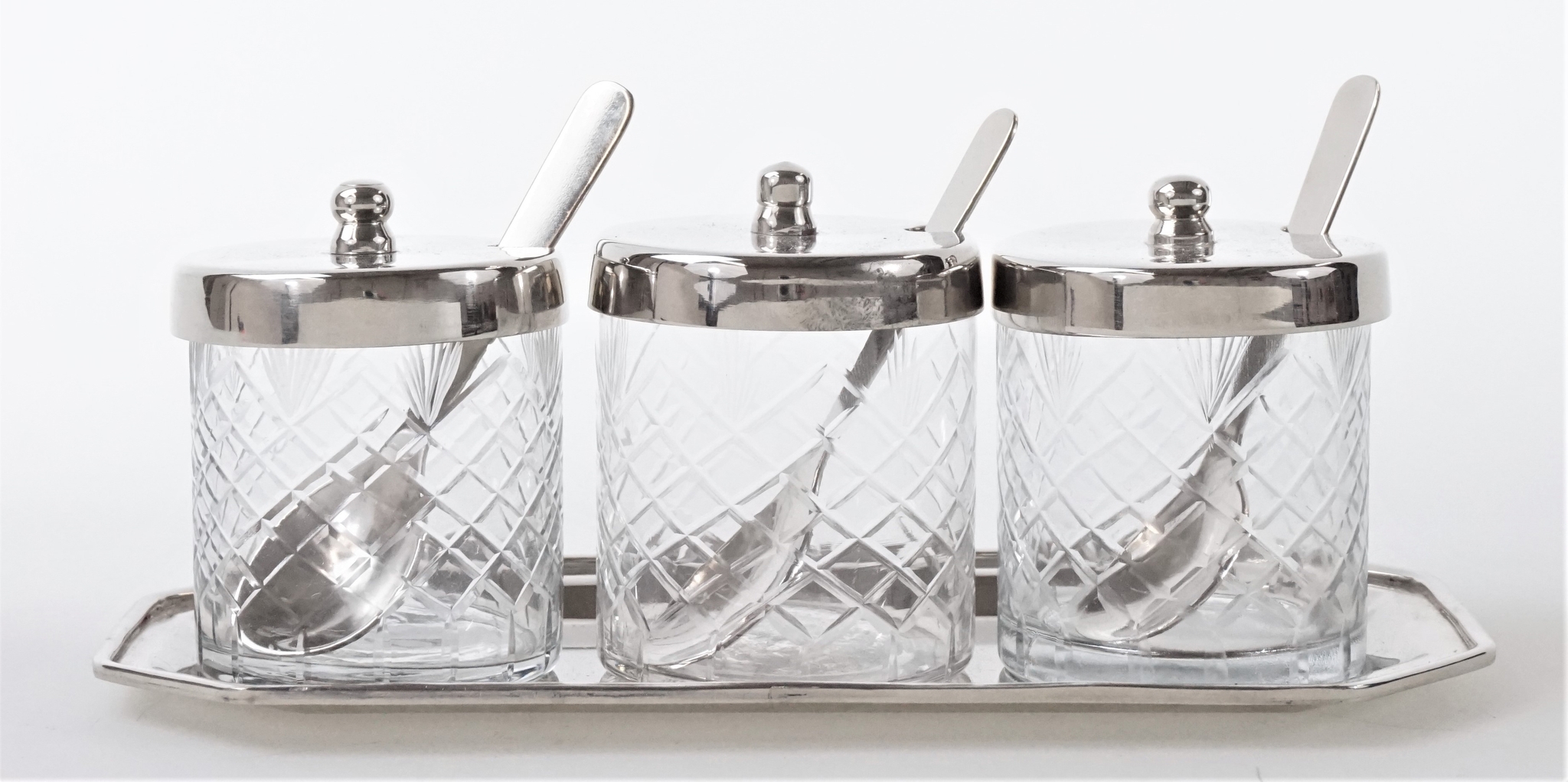 - Elegante set di zuccheriere "Tableau" da tre pezzi con coperchi argentati