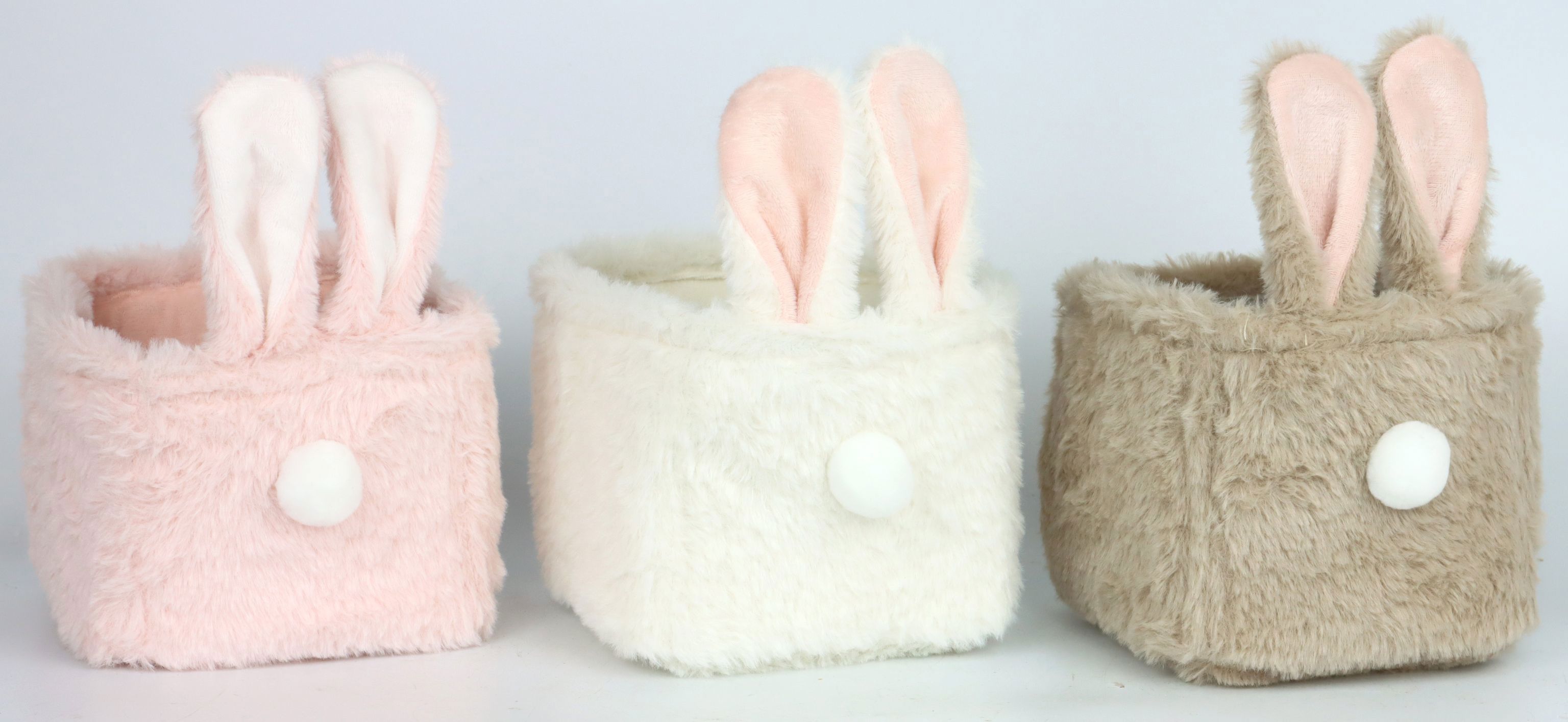 Date al vostro negozio al dettaglio di articoli per la casa e il lifestyle un fascino festivo con gli incantevoli cestini con le orecchie lunghe "Happy Rabbit" **. Questo set di tre pezzi è composto da cestini dal design artistico che non solo colpiscono per il loro aspetto straordinario, ma anche per la loro versatilità. I cestini sono realizzati in poliestere di alta qualità e misurano circa 22 cm di altezza, il che li rende perfetti per un'ampia gamma di decorazioni.