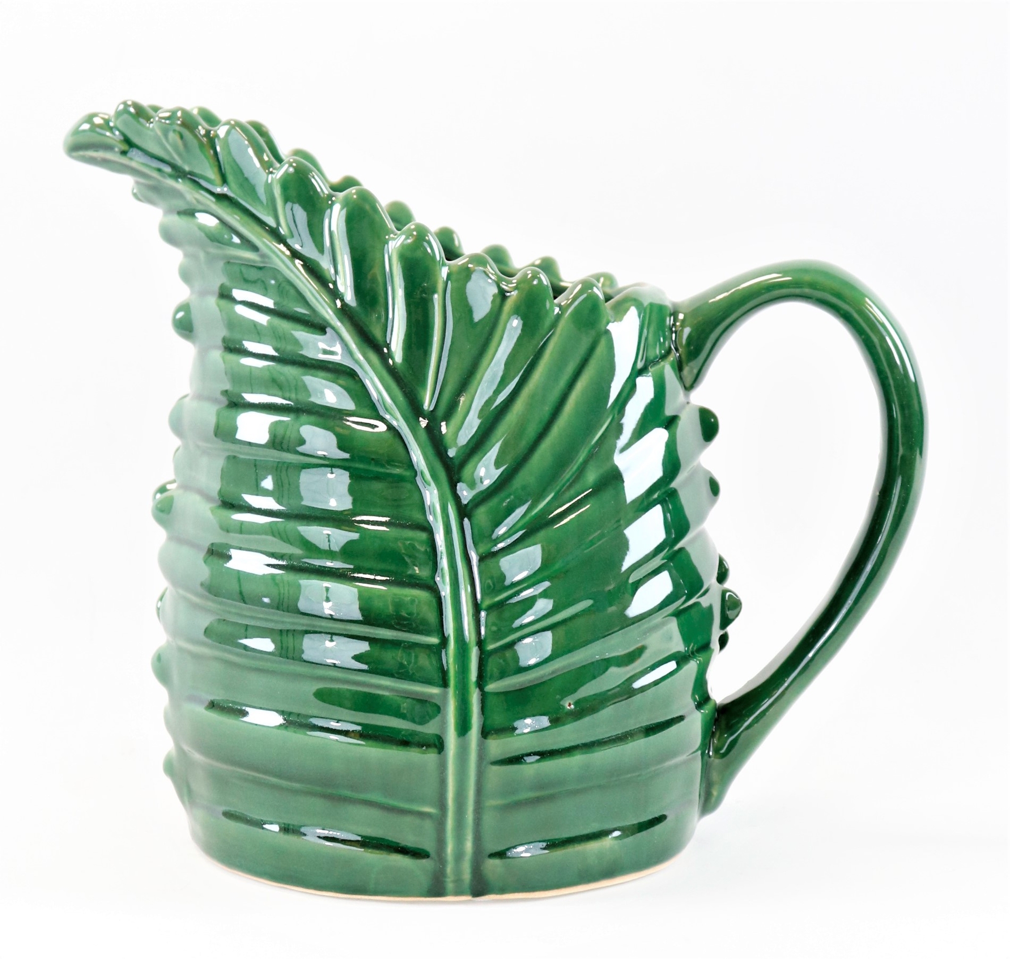 La caraffa "FOLIAGE" ha una capienza di 1,9 litri ed è realizzata in ceramica di alta qualità. Il suo design unico a forma di foglia conferisce a qualsiasi ambiente un'estetica naturale e moderna, perfetta per la stagione primavera/estate. Come centrotavola o come elemento decorativo nel vostro negozio, la brocca attirerà sicuramente l'attenzione.