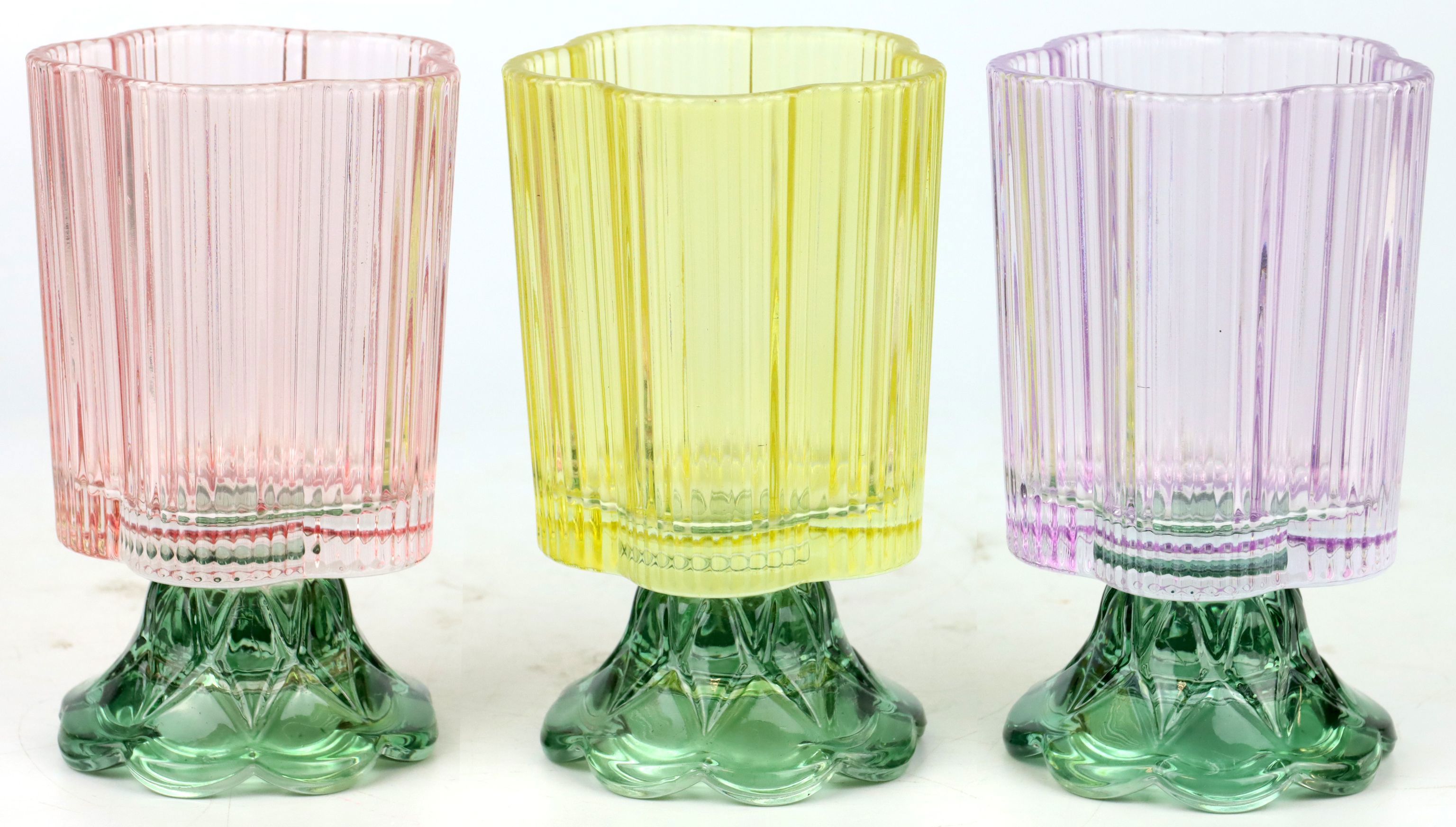 Realizzati in vetro colorato di alta qualità, ognuno dei tre vasi, con un'altezza di circa 12 cm, colpisce per il suo gioco di colori e riflessi unico. Questi elementi decorativi non sono solo un richiamo visivo su qualsiasi davanzale o patio, ma anche un'accattivante decorazione da tavola per le occasioni speciali. Il gioco di colori vivaci crea accenti allegri in ogni ambiente e crea un'atmosfera calda e invitante.