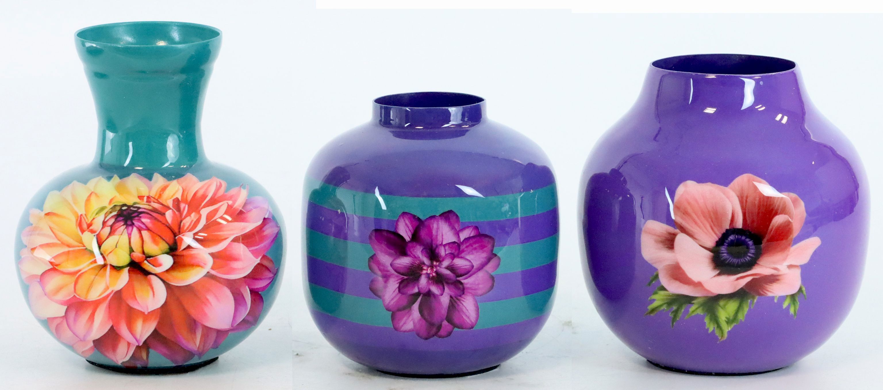 Realizzato in ceramica di alta qualità all'interno, il trio di vasi offre durata e stabilità, mentre la superficie lucida accentua perfettamente la sofisticata stampa floreale. Come elemento decorativo singolo o in combinazione con altri accessori per la casa, questi vasi sono versatili e offrono numerose opzioni di design. Sono ideali per presentare fiori freschi o composizioni di fiori secchi stilizzati di grande effetto.